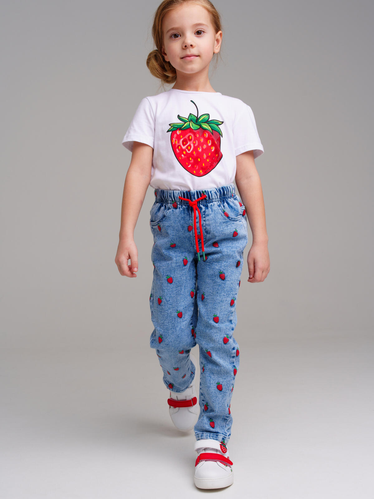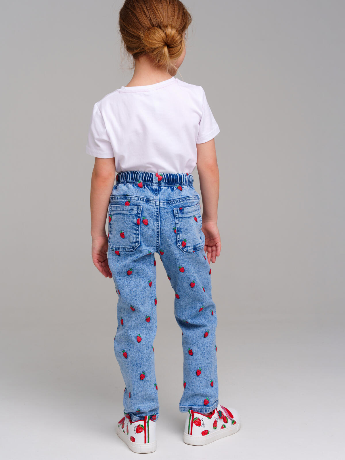Джинсы для девочки. Эластичный пояс со шнурком. Comfort fit – свободный крой брючин. Накладные карманы с клапанами на боковых швах.