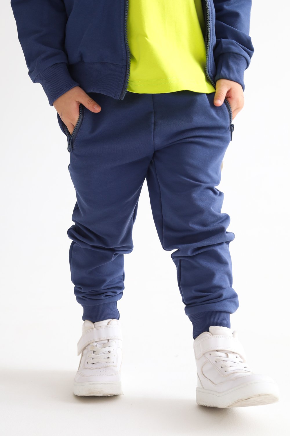 Базовые зауженные брюки с манжетами по низу. Пояс на мягкой резинке. Два кармана с застежкой на молнию