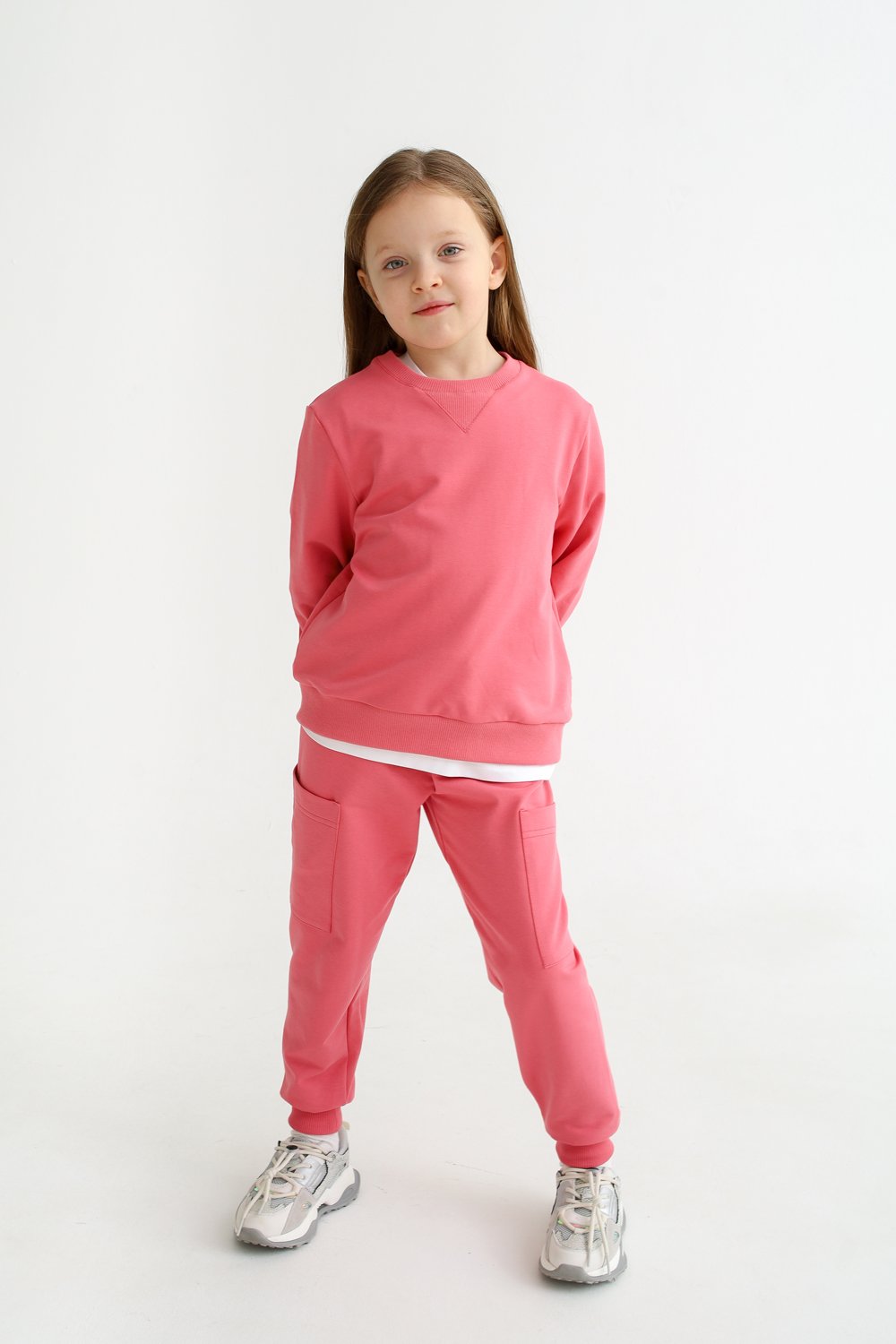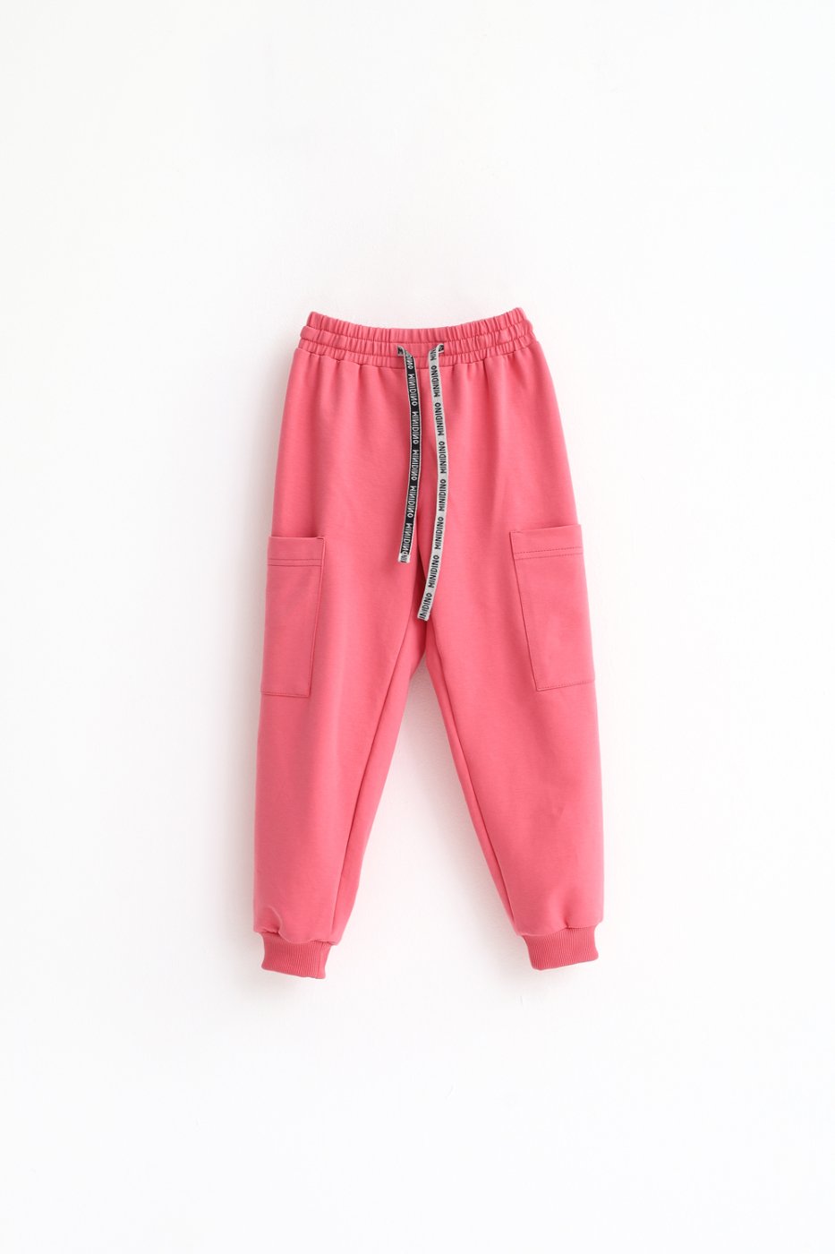 Свободные брюки с манжетами по низу. Два накладных кармана. Пояс на мягкой резнке со шнуром.