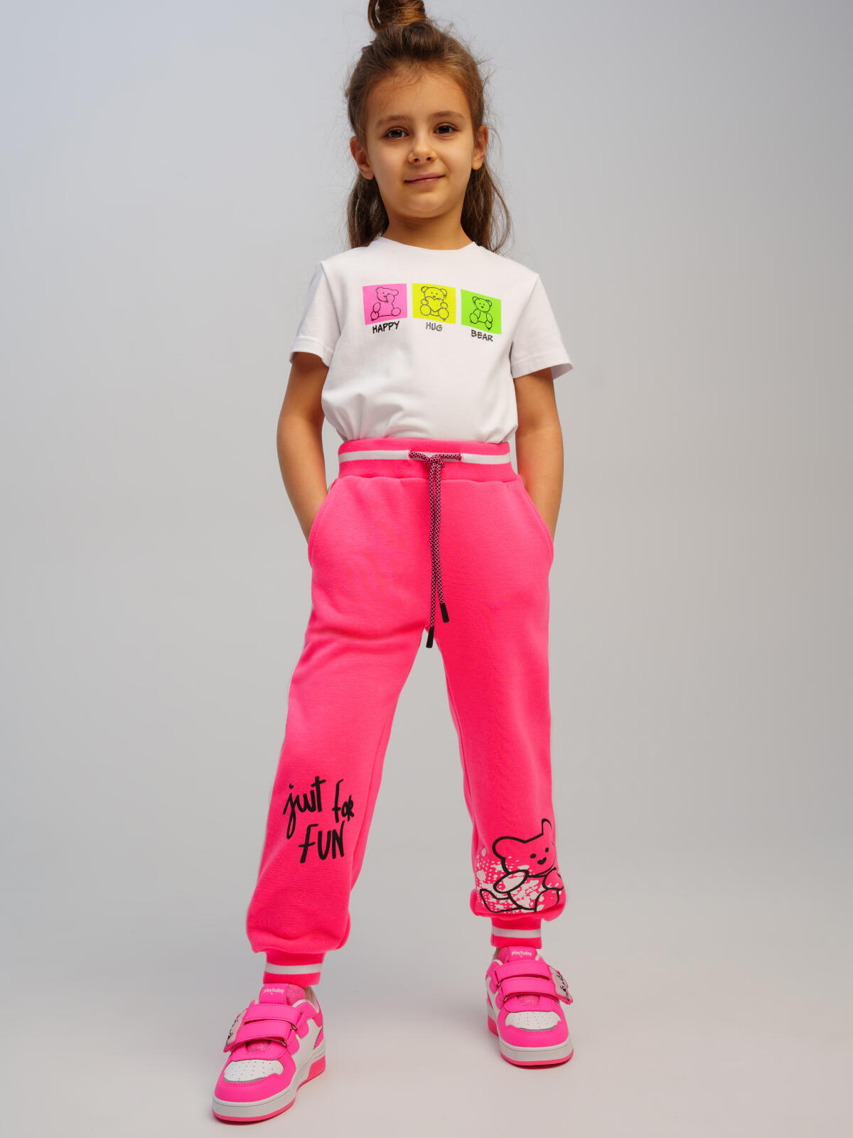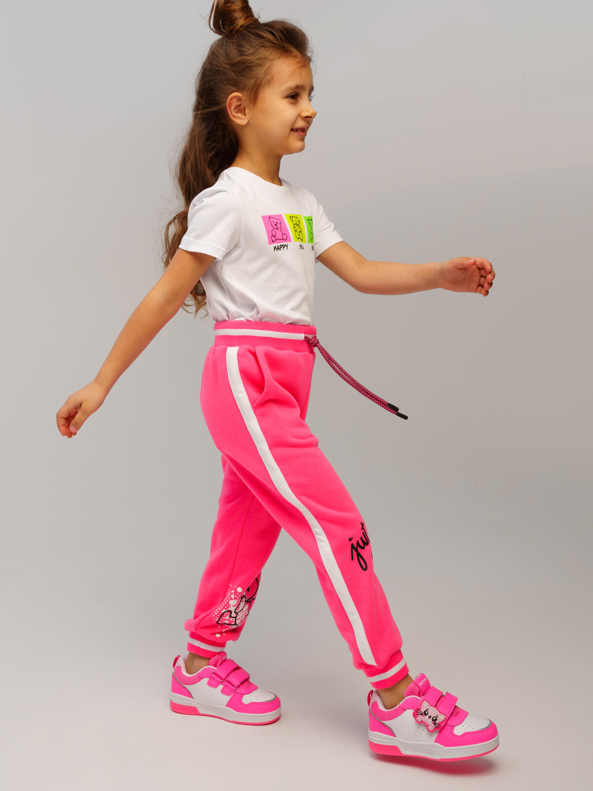 Брюки детские для девочки. Штаны на резинке со шнурком. Высокое содержание хлопка. Функциональные карманы. Манжеты в эластичный рубчик. Модель выполнена из качественного и приятного на ощупь трикотажа.