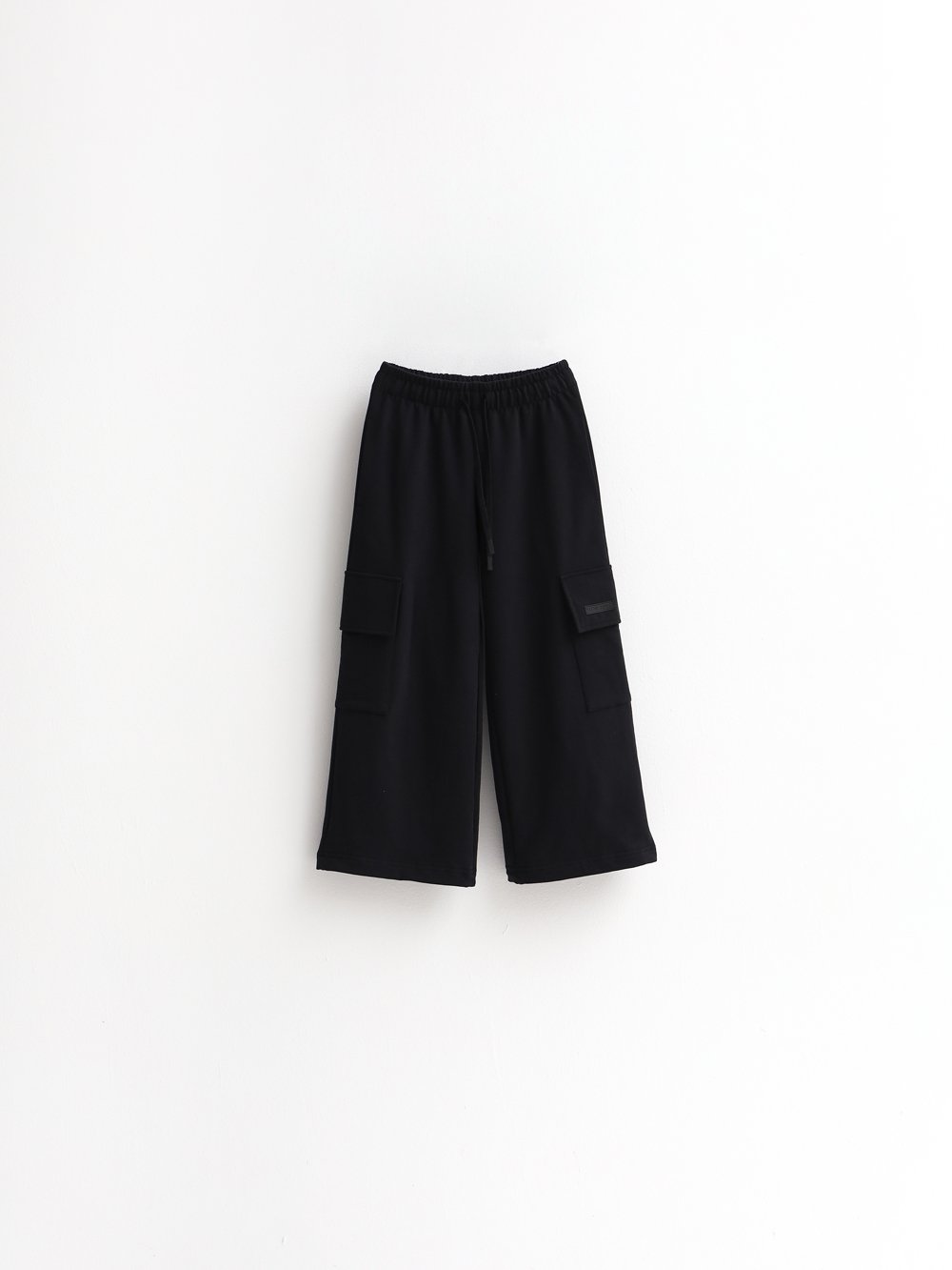 Брюки с большими карманами-карго и поясом на резинке со шнурком. Низ брюк с возможностью утяжки для создания нового силуэта. В боковых швах карманы.