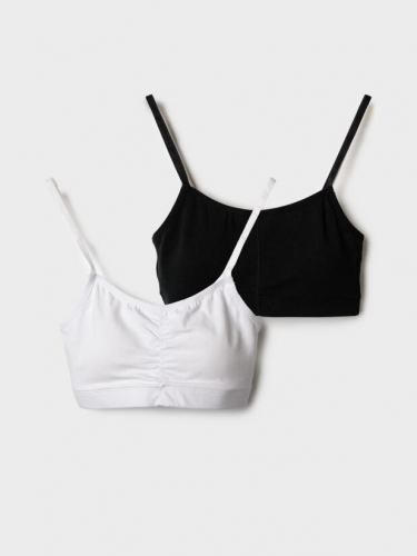 Набор из двух трикотажных бюстгальтеров для девочки подростка от PlayToday — комфортный и деликатный комплект, созданный специально для юных модниц. Универсальный крой, мягкий материал и лёгкая поддержка делают эти топы идеальными для школы, спорта и повседневной активности.