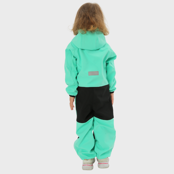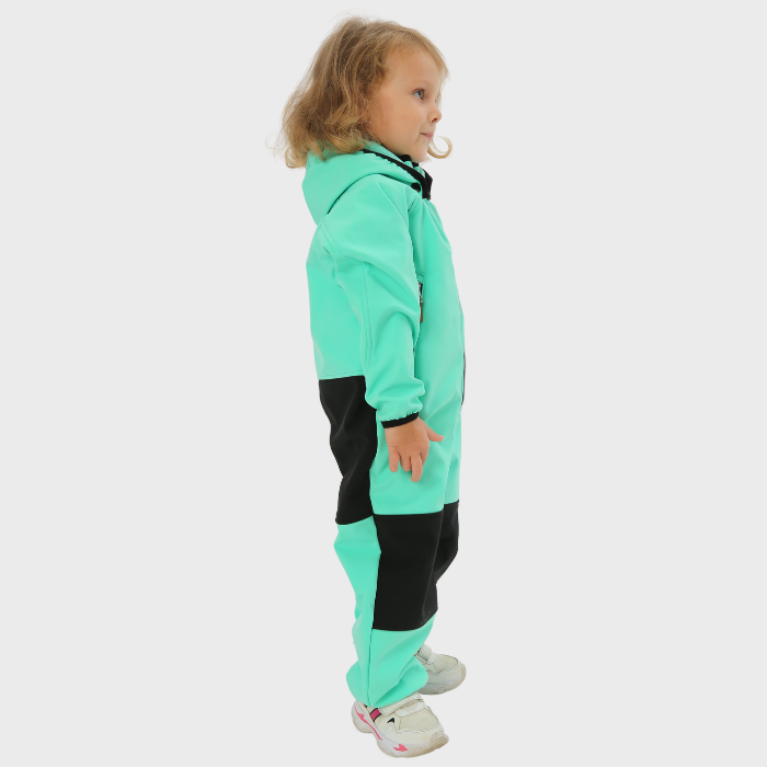 Функциональные элементы детского софтшелл комбинезона: -Современный, `дышащий` ветронепроницаемый и водоотталкивающий материал;