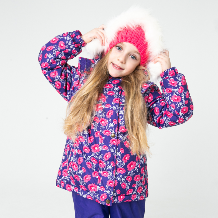 Зимний комплект-костюм для девочки, ERNA 612 Синий (розовый цветочки)