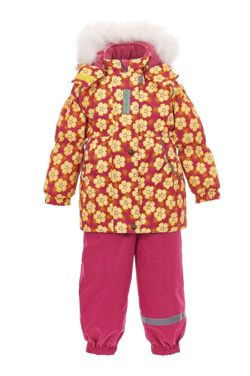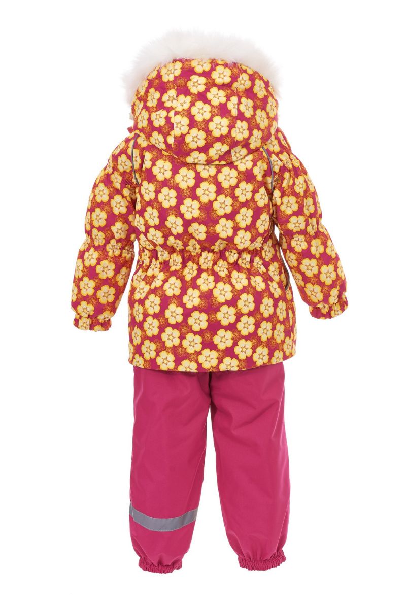 Зимний комплект-костюм для девочки, OLIVIA 812 Розовый-жёлтый в цветочек