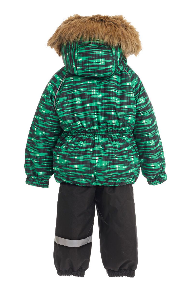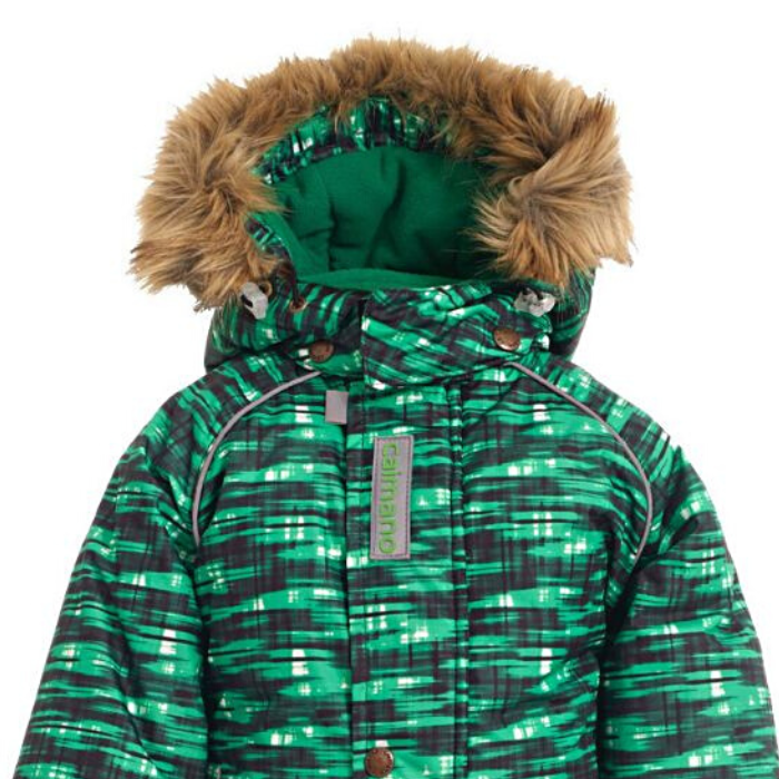 От 0°С до -30°С мороза (без учета влажности и ветра) Мембранный детский зимний костюм Caimano KAI Практичная пёстрая расцветка скроет случайные пятна и загрязнения. Комплект: детская зимняя куртка и полукомбинезон на зиму, из мембранной ткани с покрытием ECO-Tef.