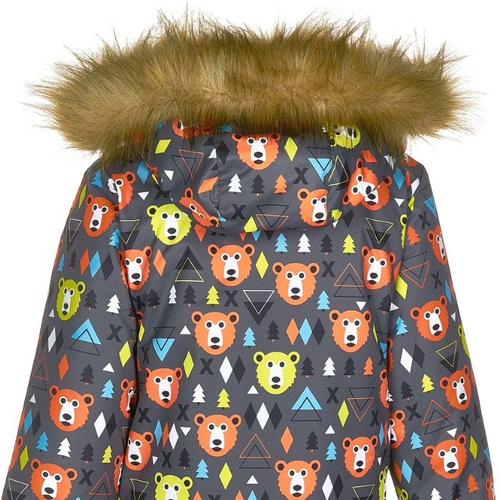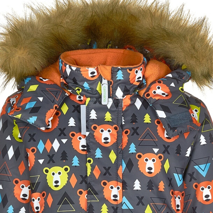 От 0°С до -30°С мороза (без учета влажности и ветра) Мембранный детский зимний костюм Caimano RICHARD Полюбившийся многим родителям принт "медвежат". На детей 3, 4, 5 лет. Комплект: детская зимняя куртка и полукомбинезон на зиму, из мембранной ткани с покрытием ECO-Tef.