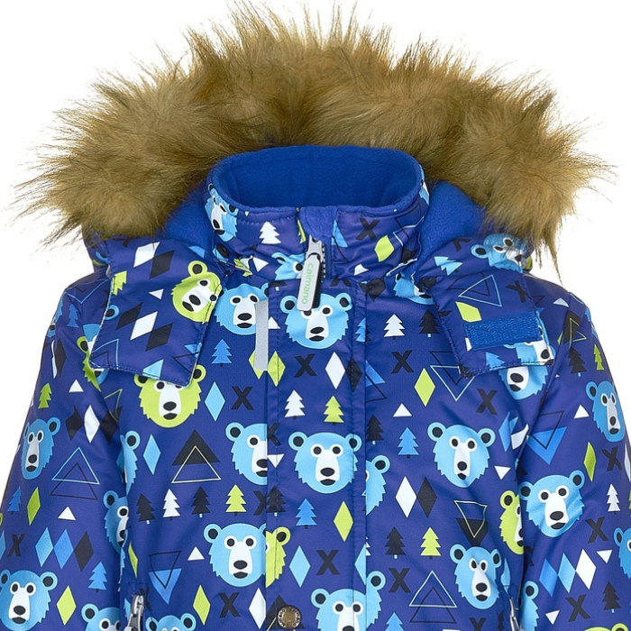От 0°С до -30°С мороза (без учета влажности и ветра) Мембранный детский зимний костюм Caimano RICHARD Полюбившийся многим родителям принт "медвежат". На детей 3, 4, 5 лет. Комплект: детская зимняя куртка и полукомбинезон на зиму, из мембранной ткани с покрытием ECO-Tef.