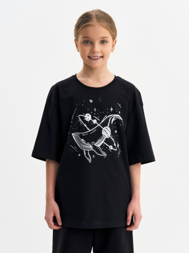 Черная футболка для девочки с принтом