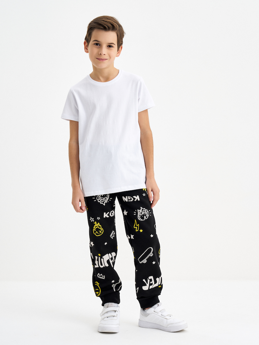 Черные брюки для мальчика с принтом