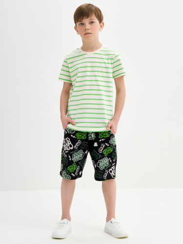 Брюки для мальчика в стиле графити з петлевого футера, с карманами на поясе с резинкой и шнурком для фиксации