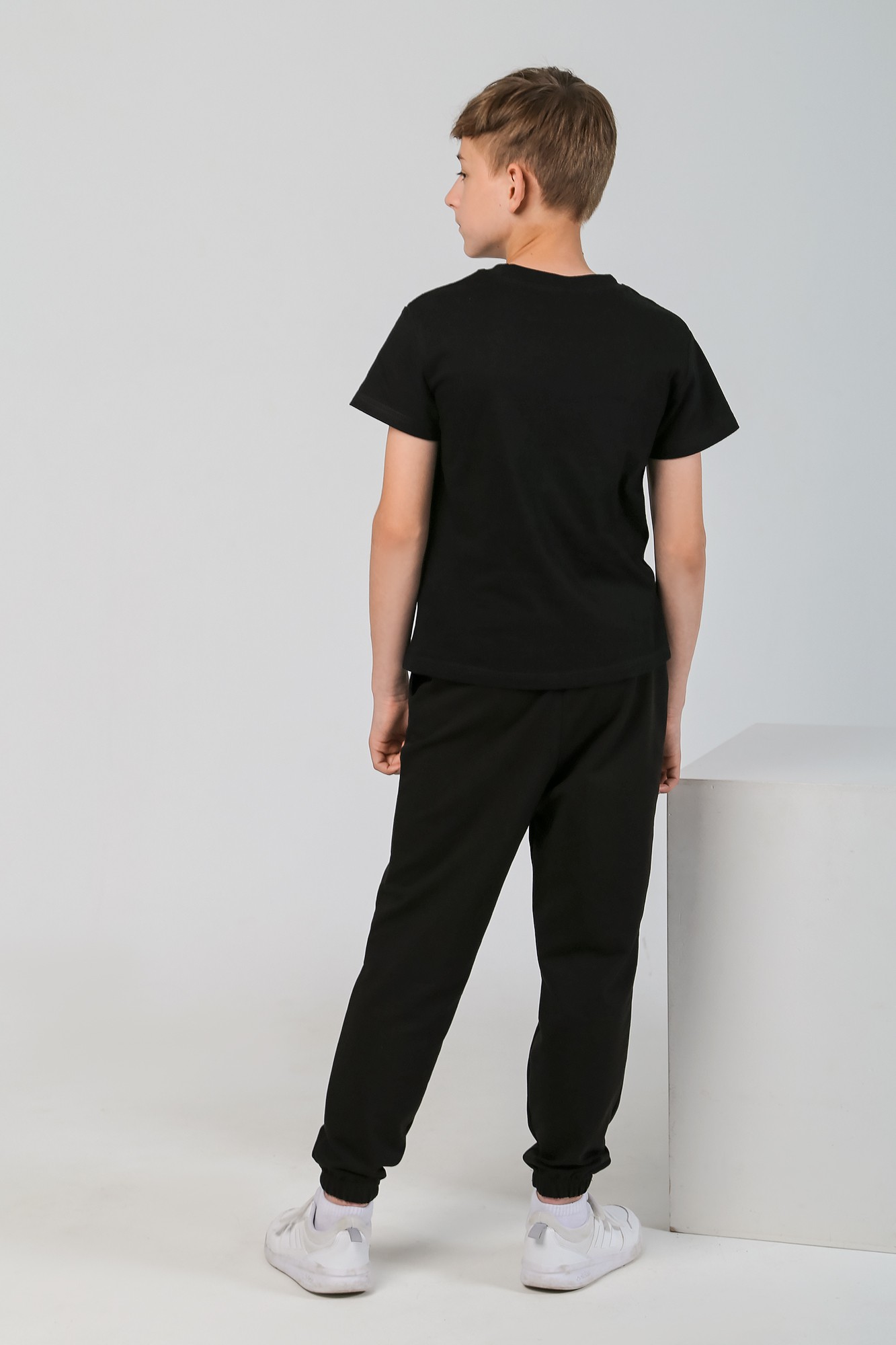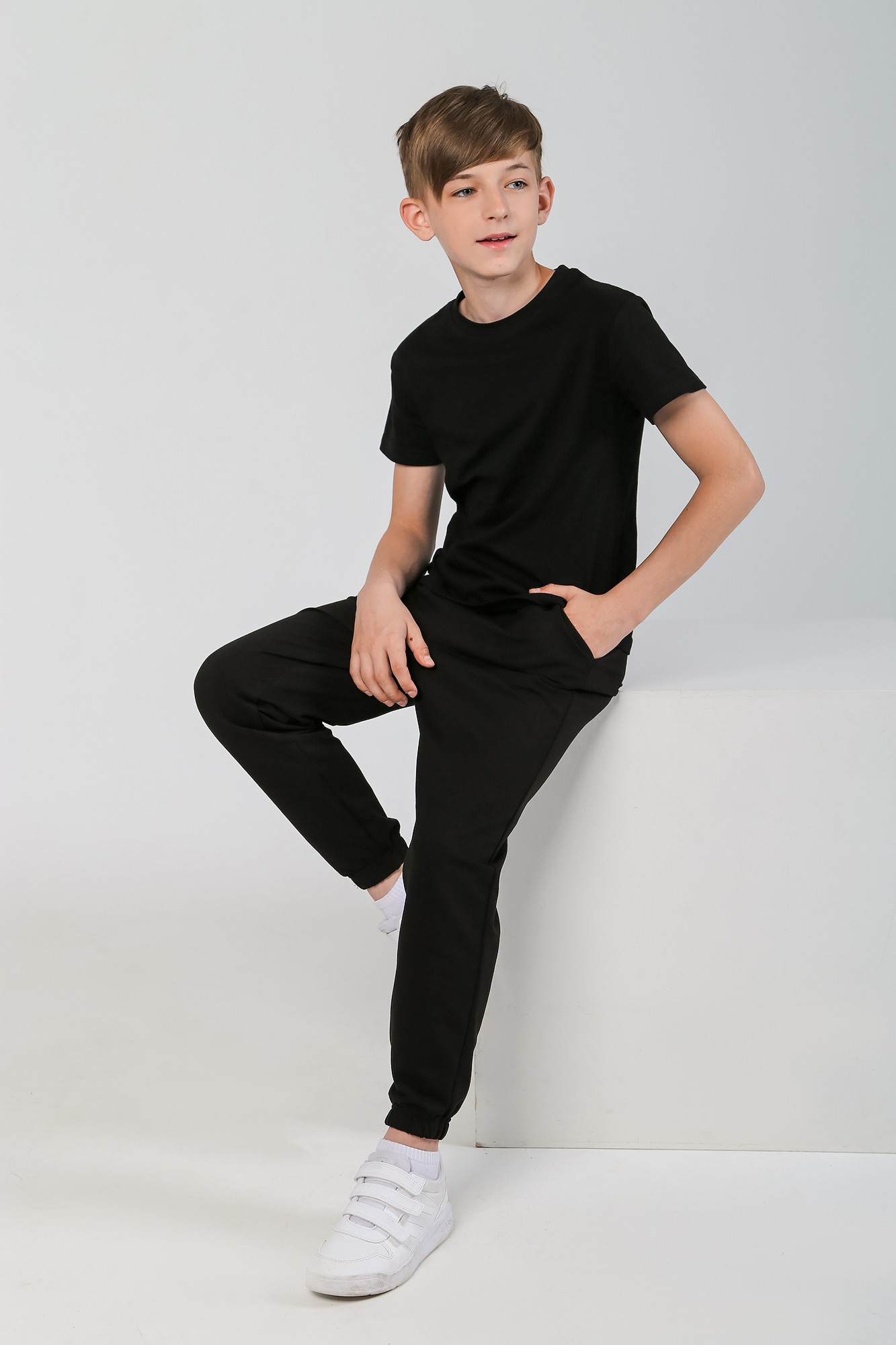 Базовая футболка для мальчика, из кулирки плотностью 160г/м2. Модель со слегка спущенной линией плеч и округлым вырезом горловины.