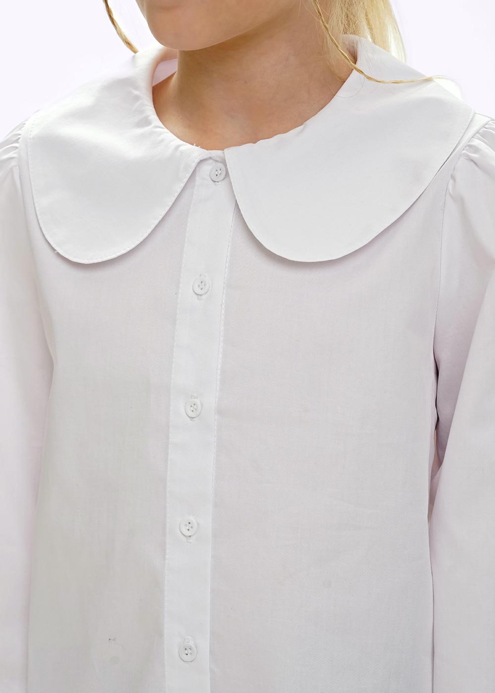 Блузка из поплина с круглым воротником, станет изысканным дополнением к школьному гардеробу. Свободный силуэт и приятный материал обеспечат комфорт на весь день. Застежка на пуговицы.