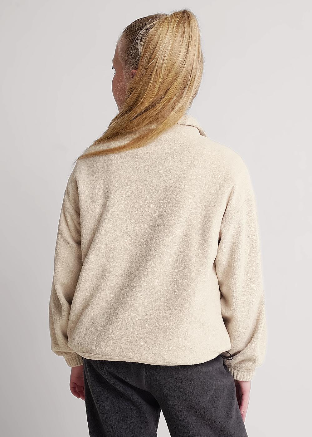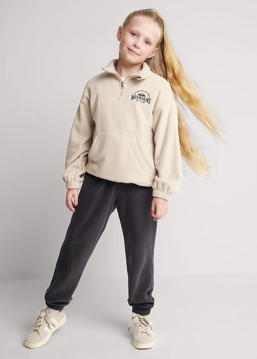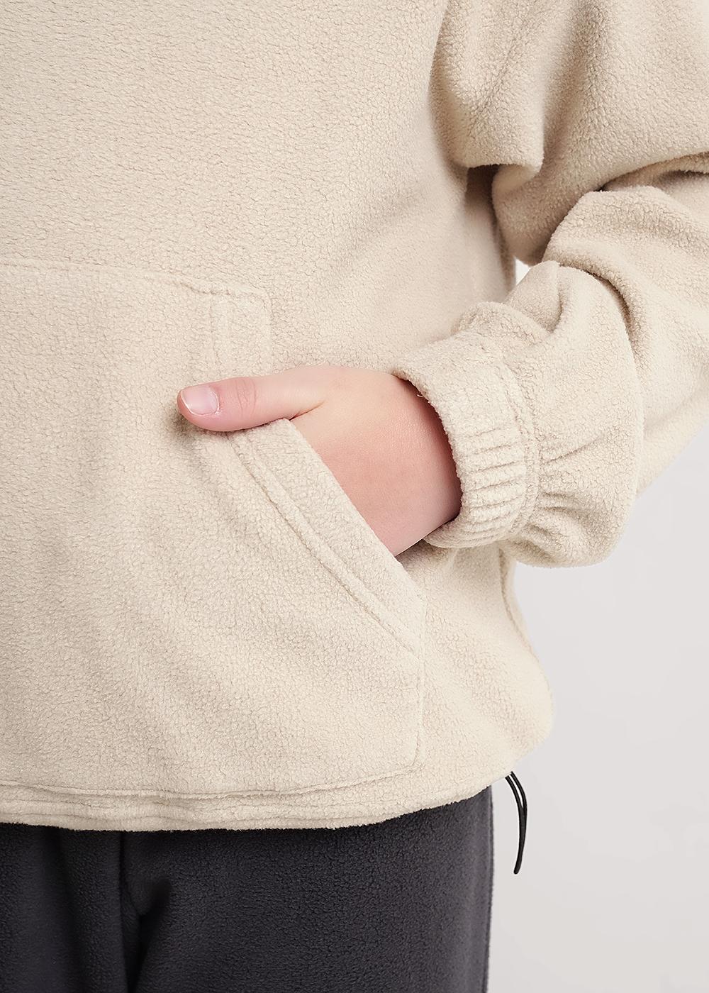 Создавай стильные луки и оставайся в тепле! Топовая модель толстовки из флиса с короткой молнией. Оверсайз силуэт, который регулируется по низу с помощью шляпного шнура и фиксаторов. Акцентная вышивка и мягкий воротник стойка.