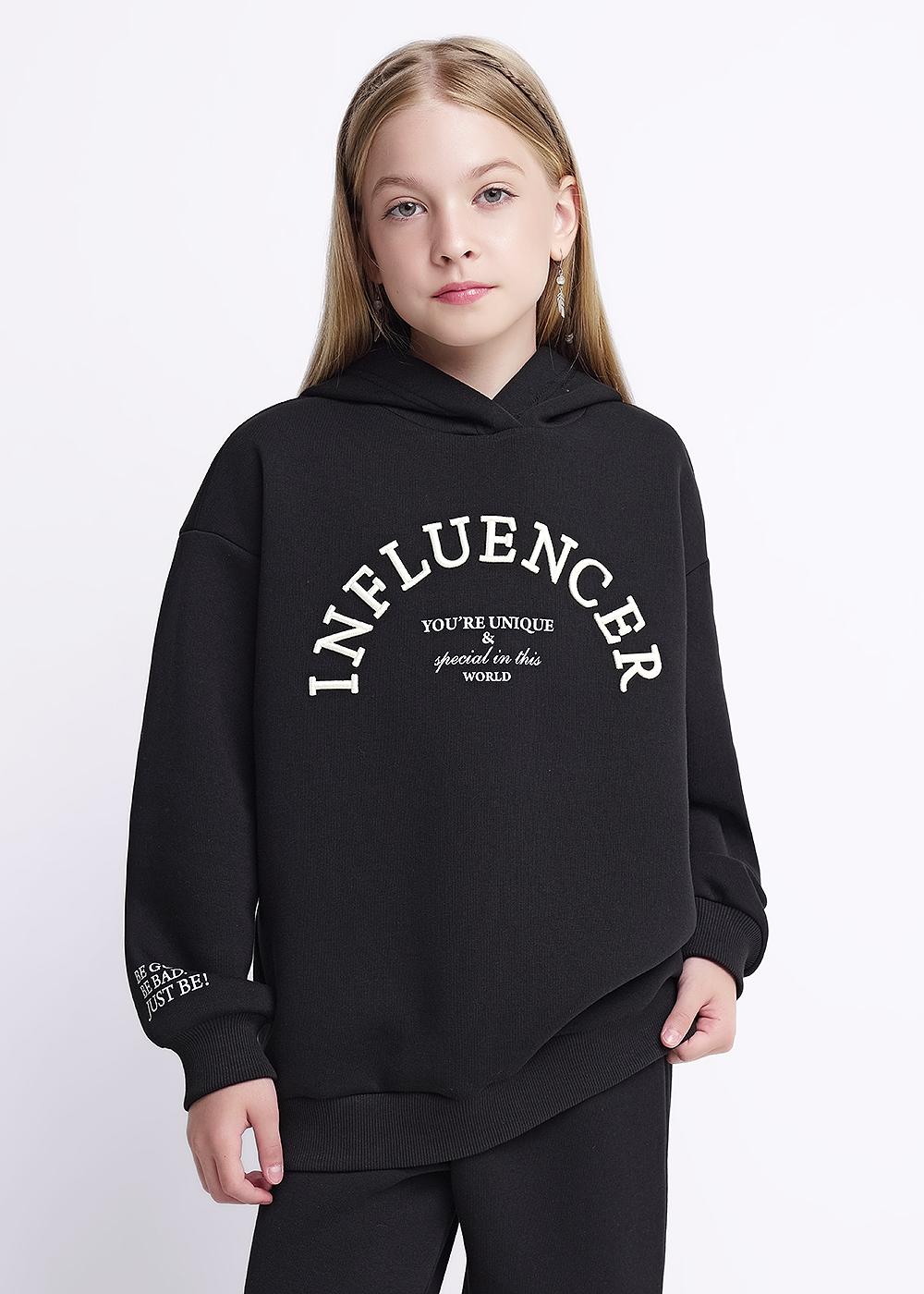 Мягкое тёплое худи из футера с начёсом идально подойдёт для прогулок в прохладную погоду. Модель дополнена уютным капюшоном и стильным принтом. Худи отлично подойдёт для создания стильного и практичного образа на каждый день!