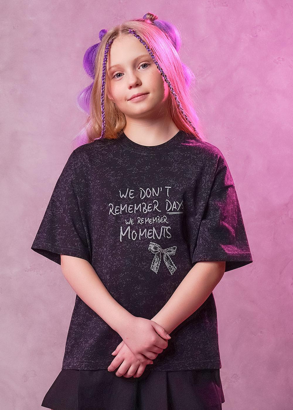 CLE 866885/11кдн_п Футболка детская для девочки 866885/11кдн_п т.серый/чёрный
