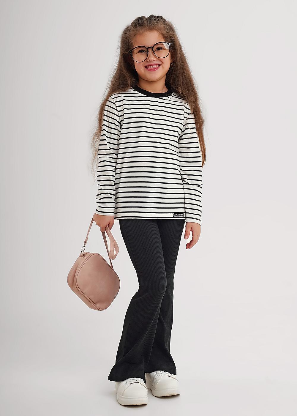CLE 867281кдн Лонгслив для девочки 867281кдн молочный/чёрный