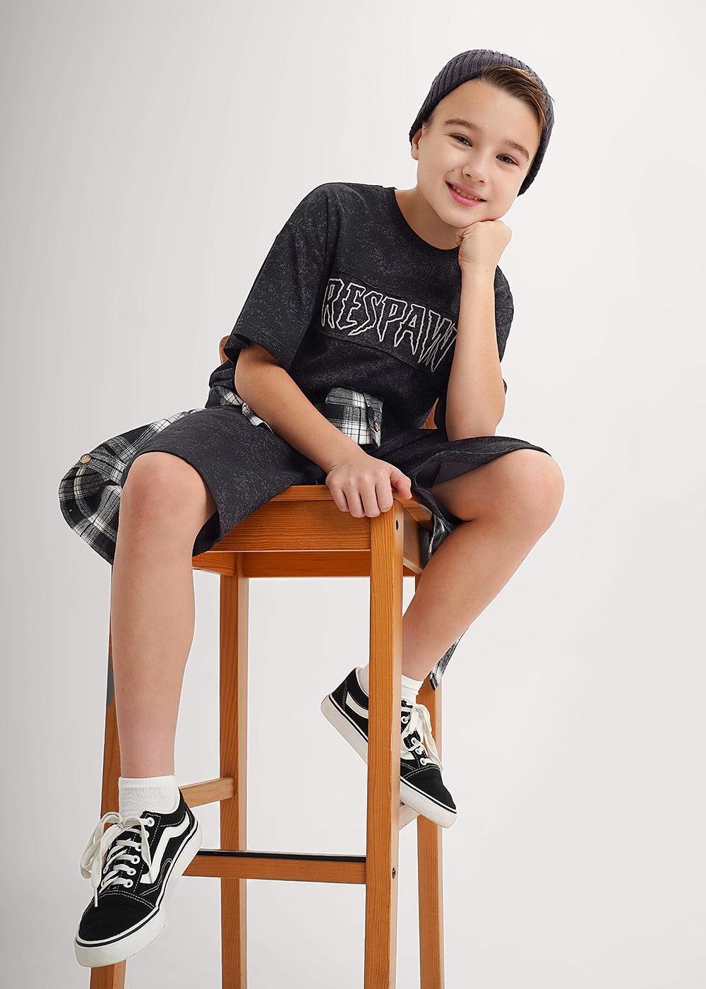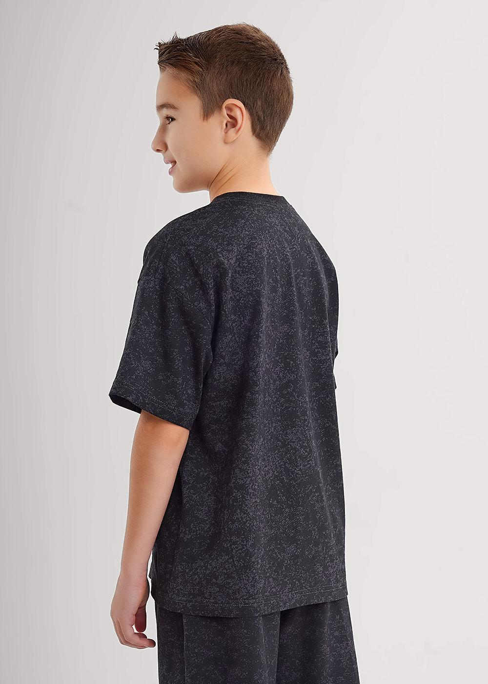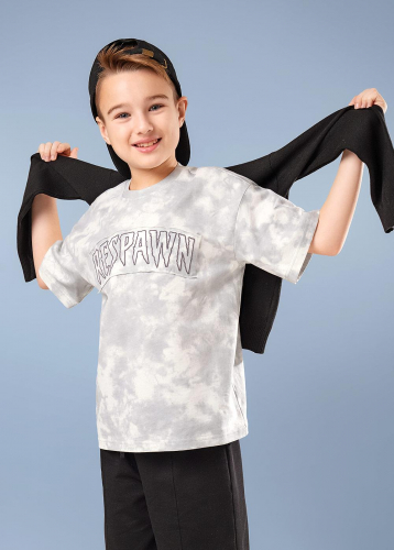 Хлопковая оверсайз футболка с эффектом варки - основа любого гардероба. Эластичная горловина, комфортная посадка по фигуре, принт- аппликация спереди. Сочетай с брюками или шортами из новой коллекции и будь в тренде!