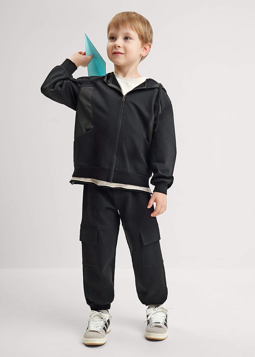 Удобные брюки из мягкого футера для мальчика с декоративными рельефами в области колен. Модель оснащена накладными карманами, эластичным поясом с регулировкой по талии для комфортной посадки.Сочетай брюки с футболками и толстовками из новой коллекции!