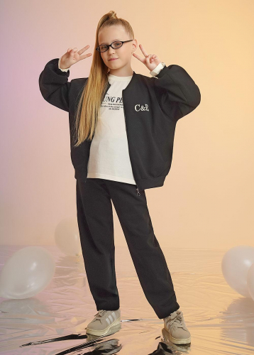 Комфортные брюки-багги из мягкого футера для девочки. Свободный крой с модными резами спереди, регулируемый объём в талии. Практичная модель для повседневной носки, не стесняет движений. Сочетай модель с толстовками из новой коллекции и будь в тренде!