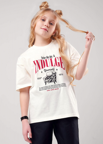Стильная футболка из хлопкового трикотажного полотна прекрасно дополнит твой гардероб. Модель дополнена эластичной горловиной, двойными срезами и ярким принтом. Создавай стильные яркие образы, сочетая модель с шортами или брюками из новой коллекции!