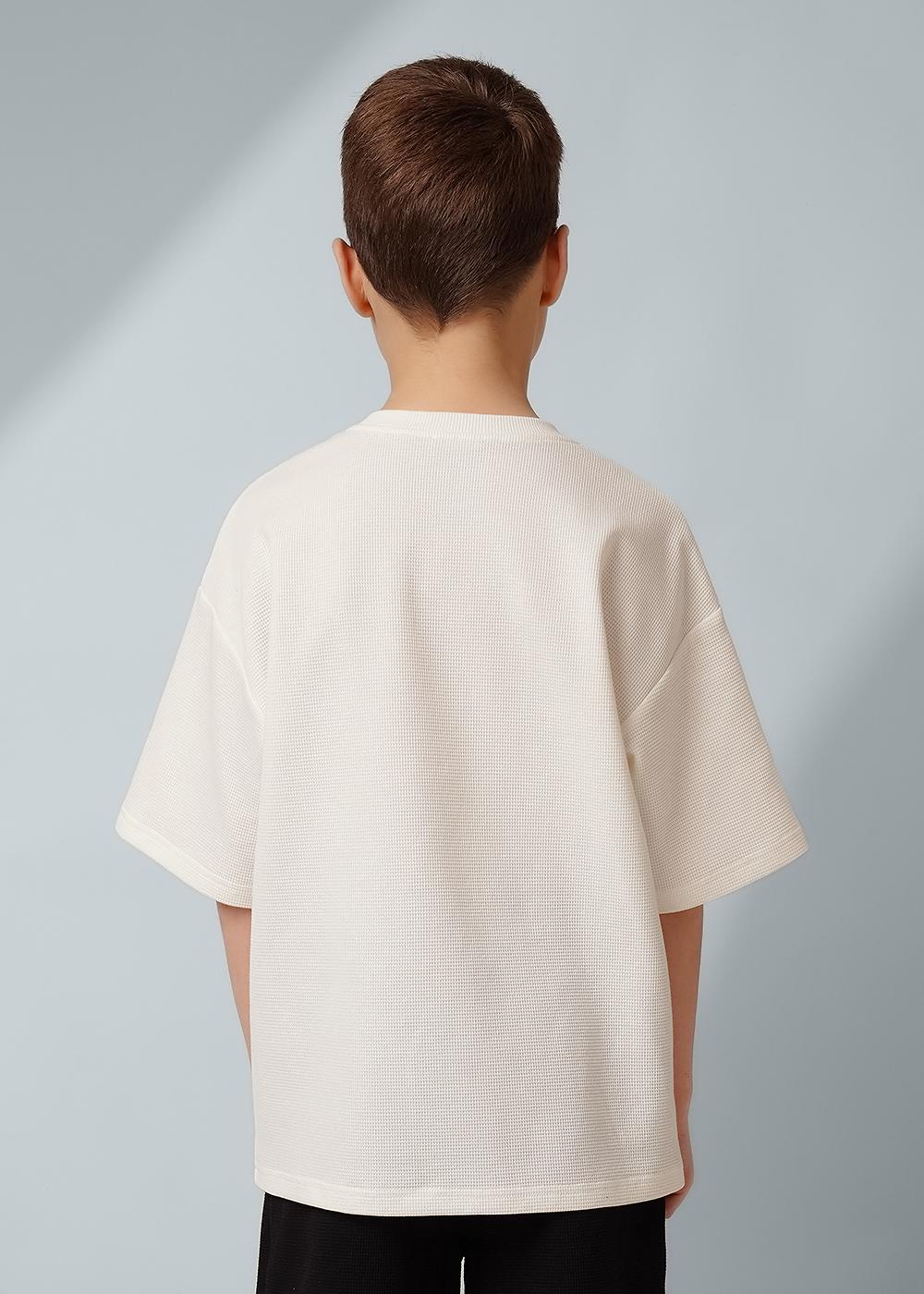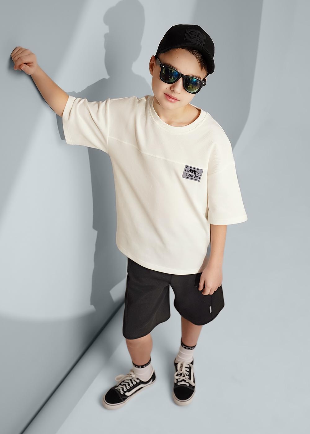 Футболка для мальчика из пике. Модель с декоративным резом по переду и стильной нашивкой. Комфортный крой, эластичная горловина. Практичная и модная базовая вещь для повседневного гардероба.