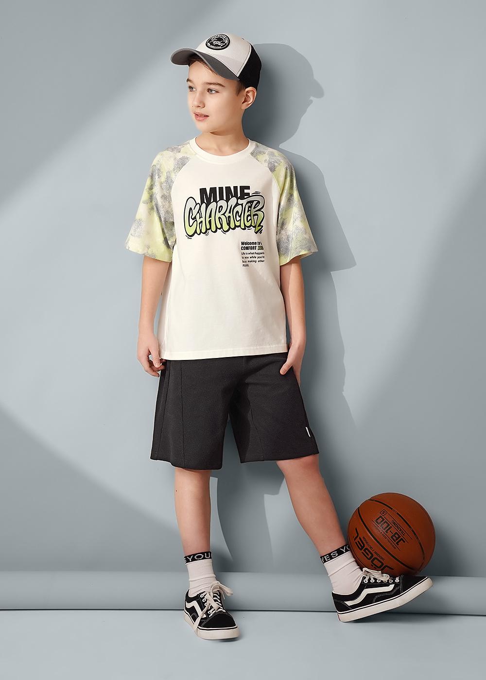 Футболка реглан для мальчика из 100 % хлопка. Акцентный принт и декоративная вшивка. Комфортная, стильная, для повседневной носки.Создавай яркие образы, сочетая футболку с шортами из новой коллекции!