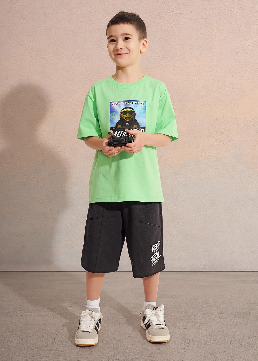 Хлопковая футболка для мальчика на каждый день! Эластичная горловина, стильный фотореалистичный принт спереди. Сочетай футболку с шортами из новой коллекции и будь в тренде!