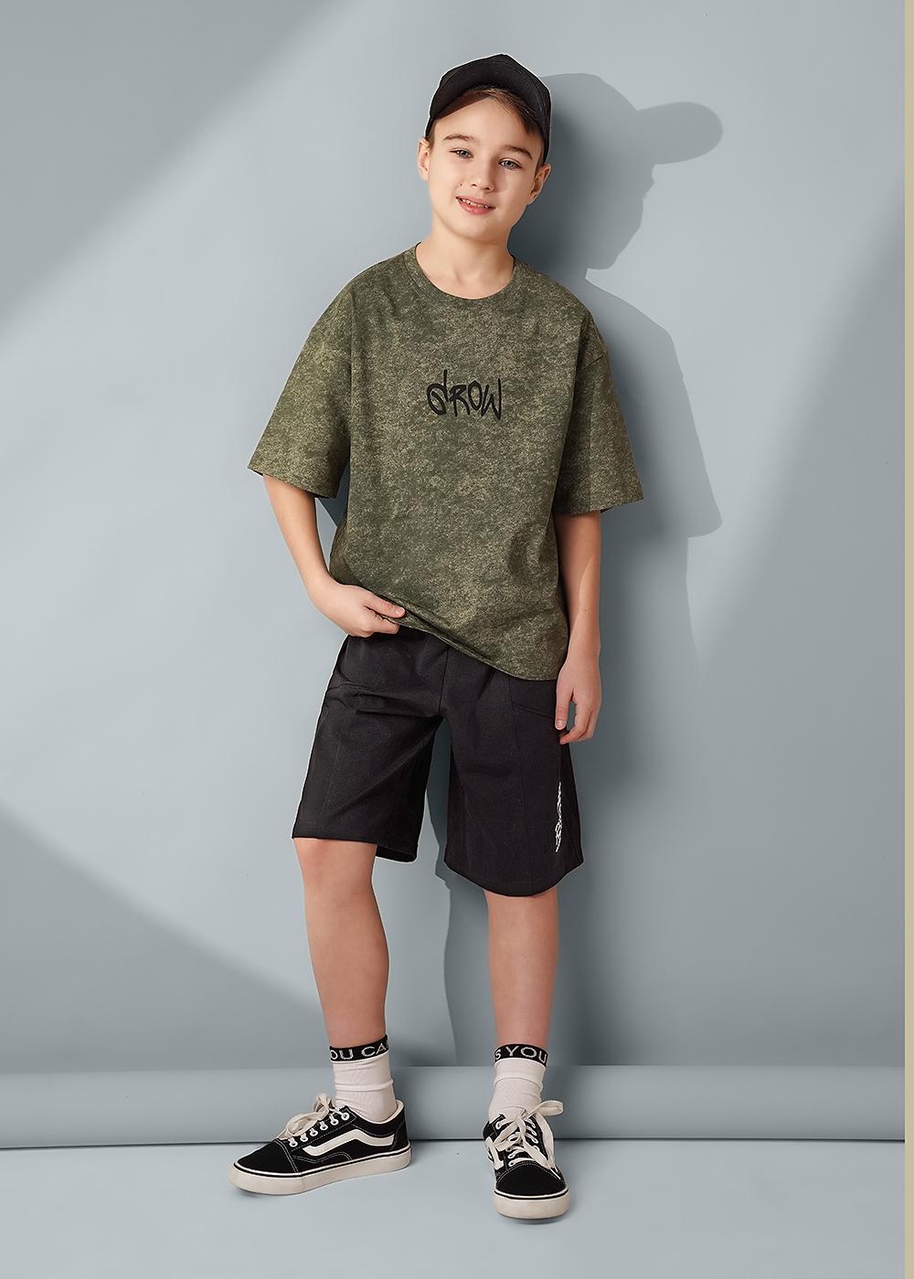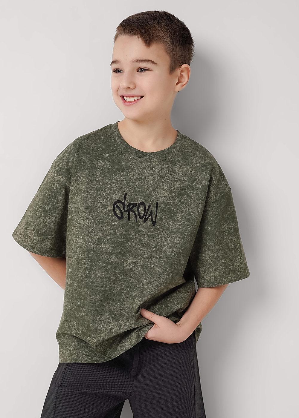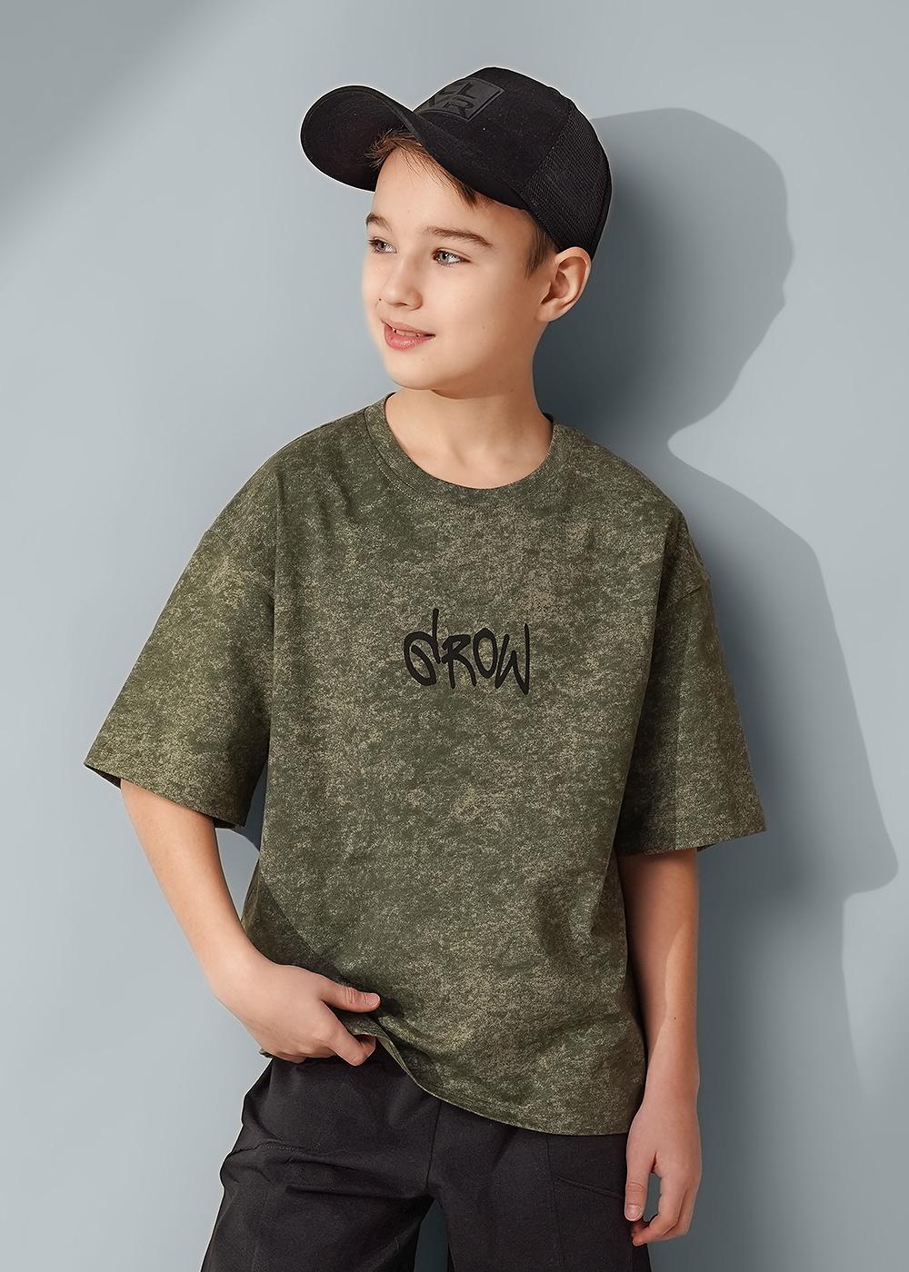 Варёная футболка для мальчика из 100 % хлопка: оверсайз-посадка, эластичная горловина, лаконичный минималистичный принт. Мягкая, комфортная, сохраняет форму после стирок, обеспечивает свободу движений.