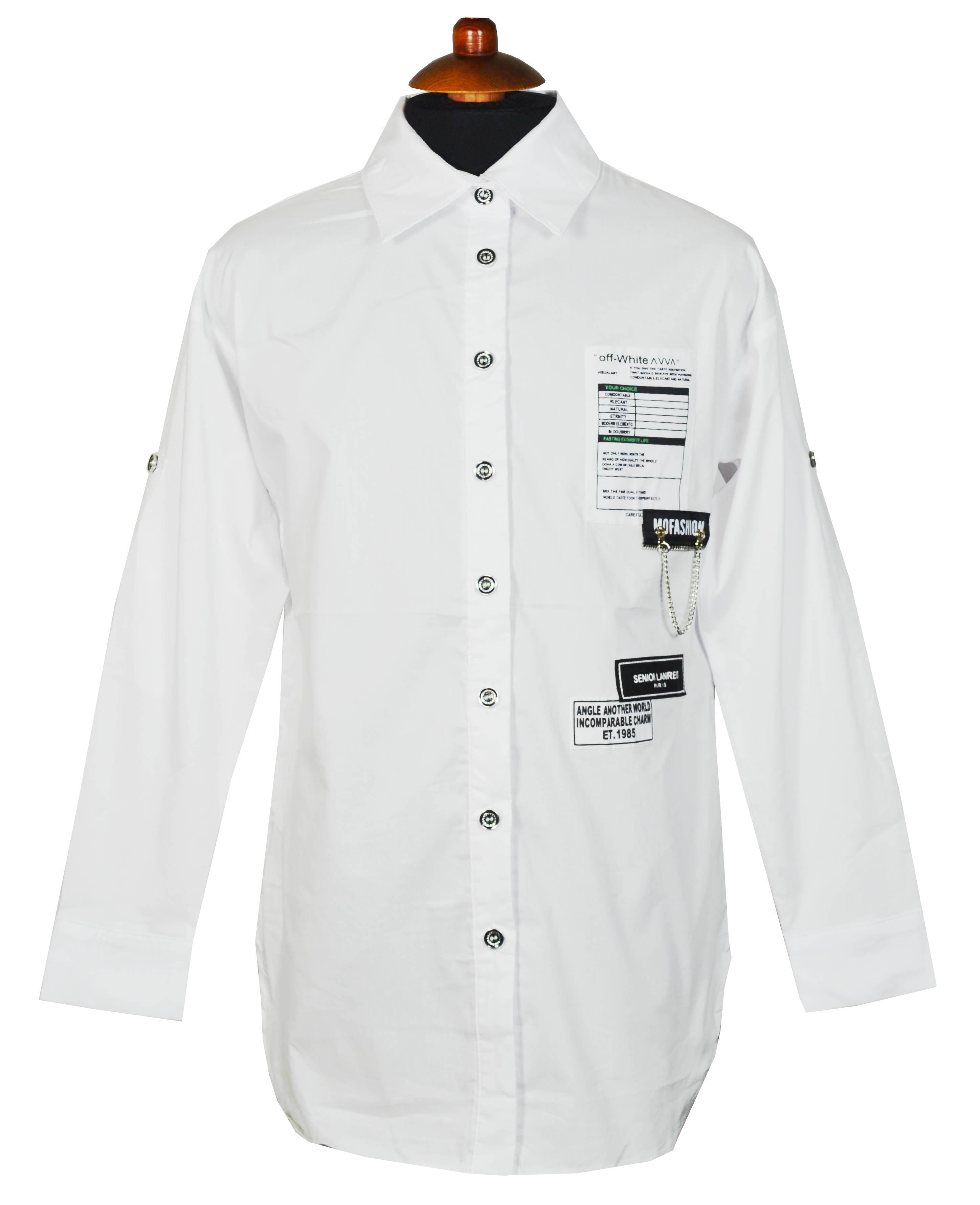 Модная рубашка для девочки. Ткань высокого качества, плотная, приятная к телу. Застежка на пуговицы.  Нашиты шевроны с цепочкой. Рукав можно подвернуть на пуговицу. Можно носить как с брюками на выпуск, так и под заправку.