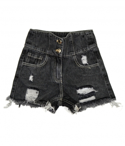 Джинсовые шорты для девочки.   Функциональные карманы. Пояс регулируется потайной резинкой.   Низ не обработан. Застежка на замок и пуговицы. Дополнены дырами и потертостями малинового цвета.