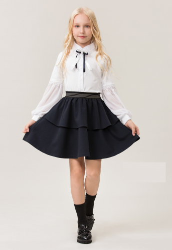 Школьная юбка для девочки из костюмной ткани. Выполнена в два слоя.  Пояс на резинке.  Длина выше колена. Хорошо сочетается с любыми водолазками и блузками.