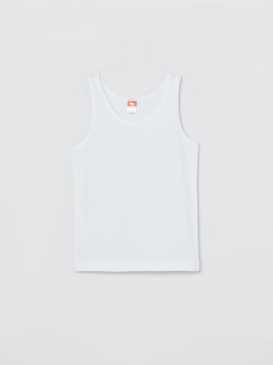 Кулирная гладь, 100% хлопок / Майка из кулирки. Срезы горловины и пройм окантованы бейкой из рибаны.