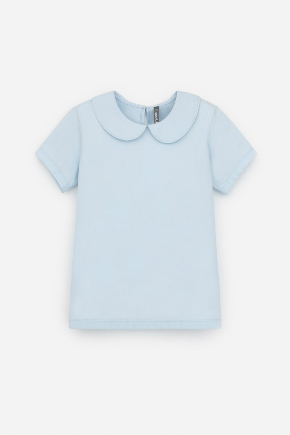 Блузка школьная для девочки с воротником из трикотажа супрем. Застёгивается на пуговицу и петельку из шляпной резины. Рукава и низ изделия обработаны плоскими швами.