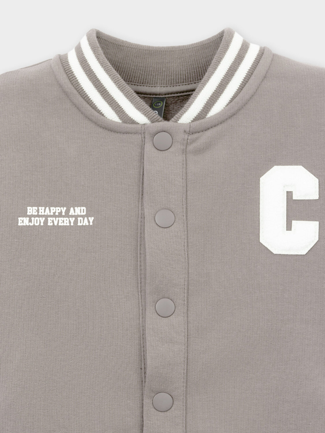 Бомбер с контрастными рукавами для мальчика. Изготовлен из мягкого петельчатого трикотажа. Застёгивается на кнопки. Воротник, манжеты и пояс - вязаные. Спереди карманы с листочкой.