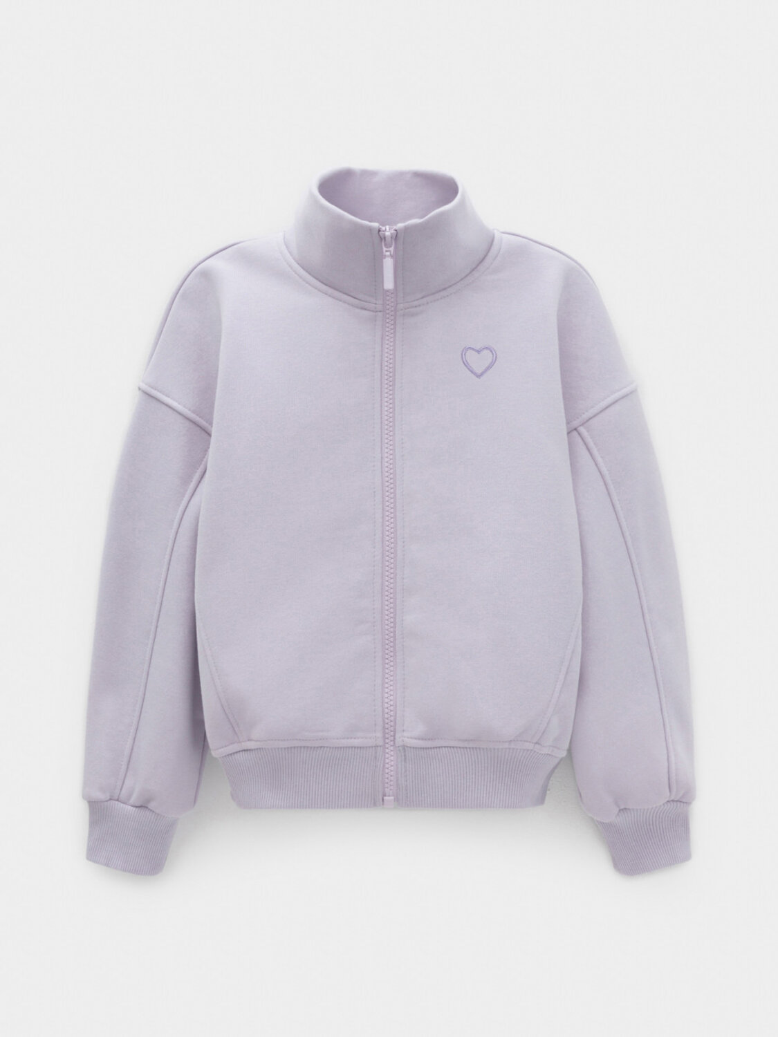 Бомбер для девочки со спущенными плечами и воротником-стойкой. Изготовлен из высококачественного петельчатого футера трёхнитки. Застёгивается на молнию. Манжеты и пояс выполнены из эластичного полотна. Изделие сохраняет цвет и форму после многократных стирок. Все трикотажные полотна производятся в соответствии с нормами швейцарского сертификата ЭкоТекс.