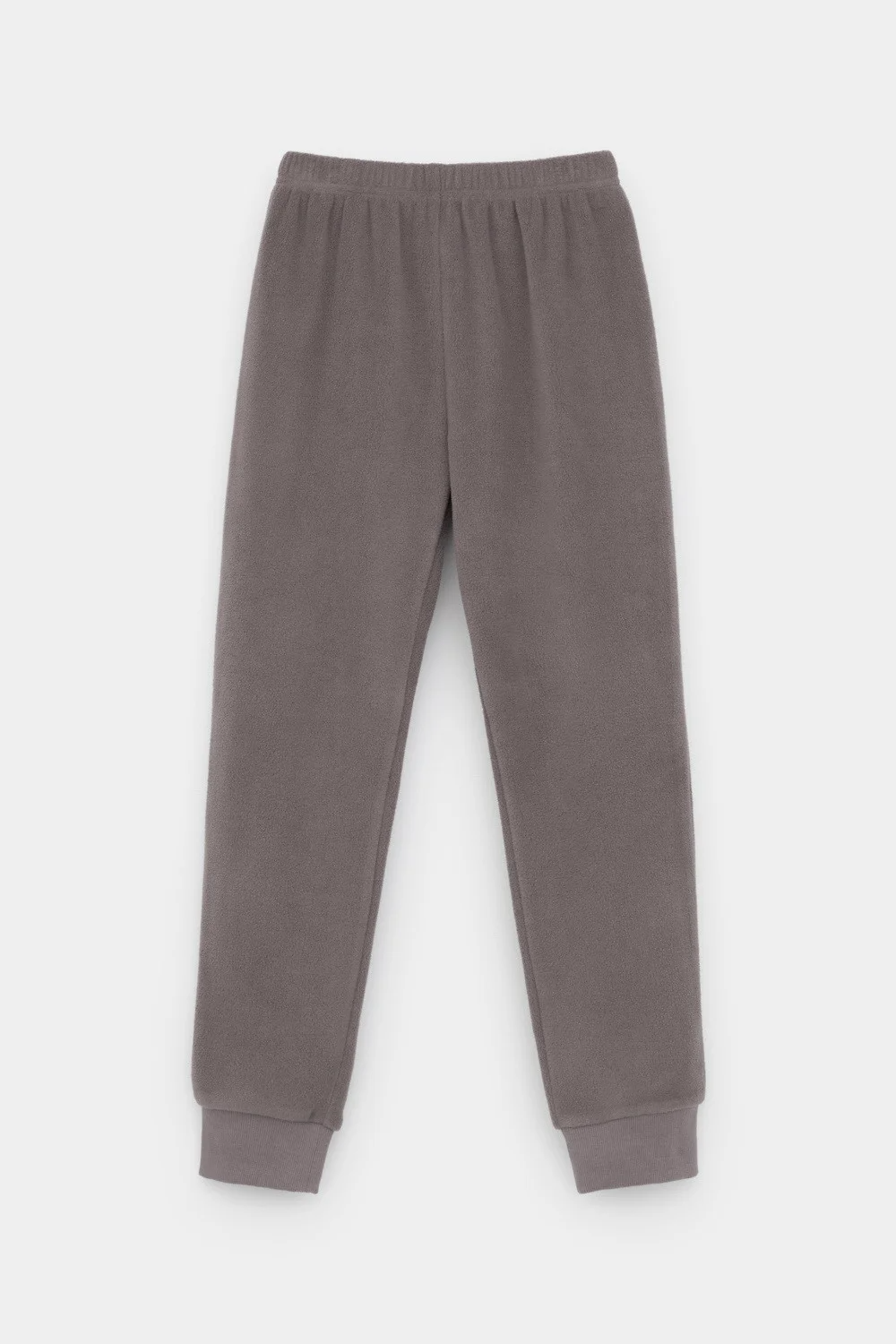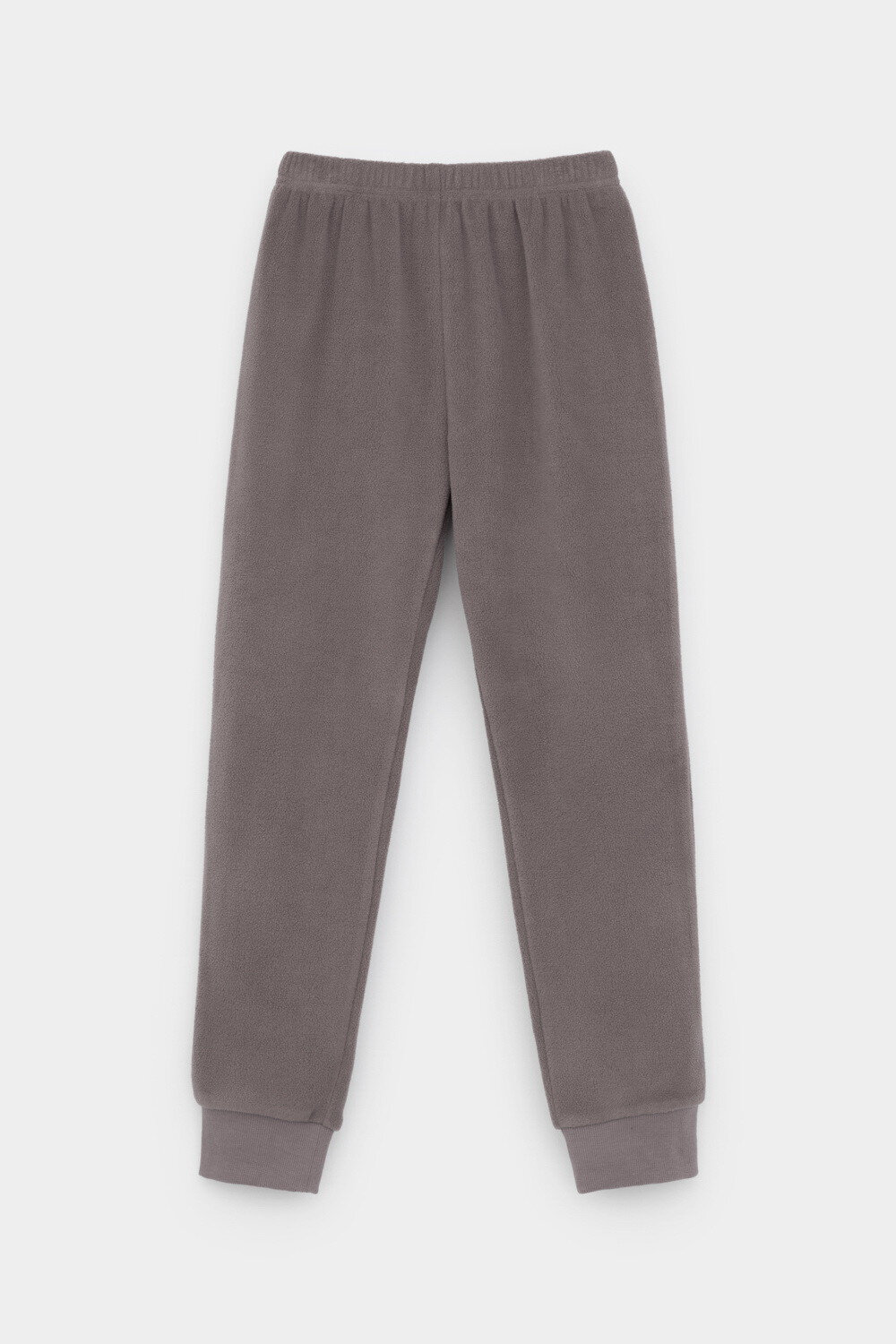 Однотонные детские брюки из флиса с поясом на резинке. Низ изделия на манжетах из эластичного трикотажа в рубчик. Брюки сохраняют цвет и форму после многократных стирок.