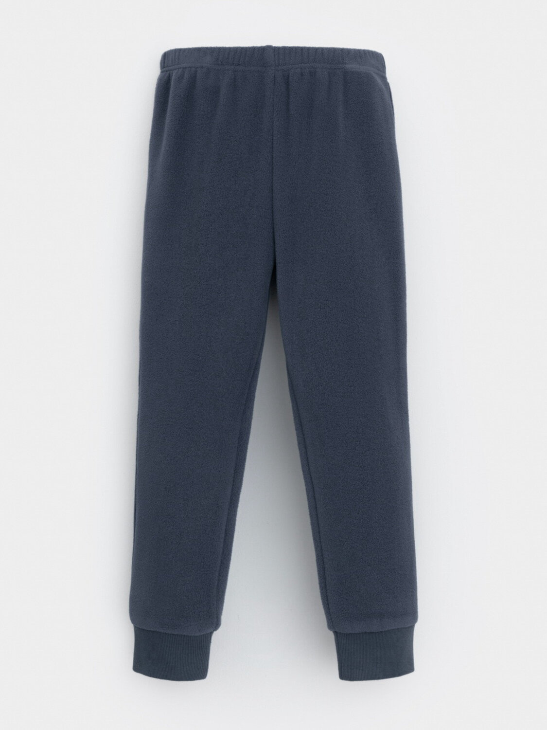 Однотонные детские брюки из флиса с поясом на резинке. Низ изделия на манжетах из эластичного трикотажа в рубчик. Брюки сохраняют цвет и форму после многократных стирок.