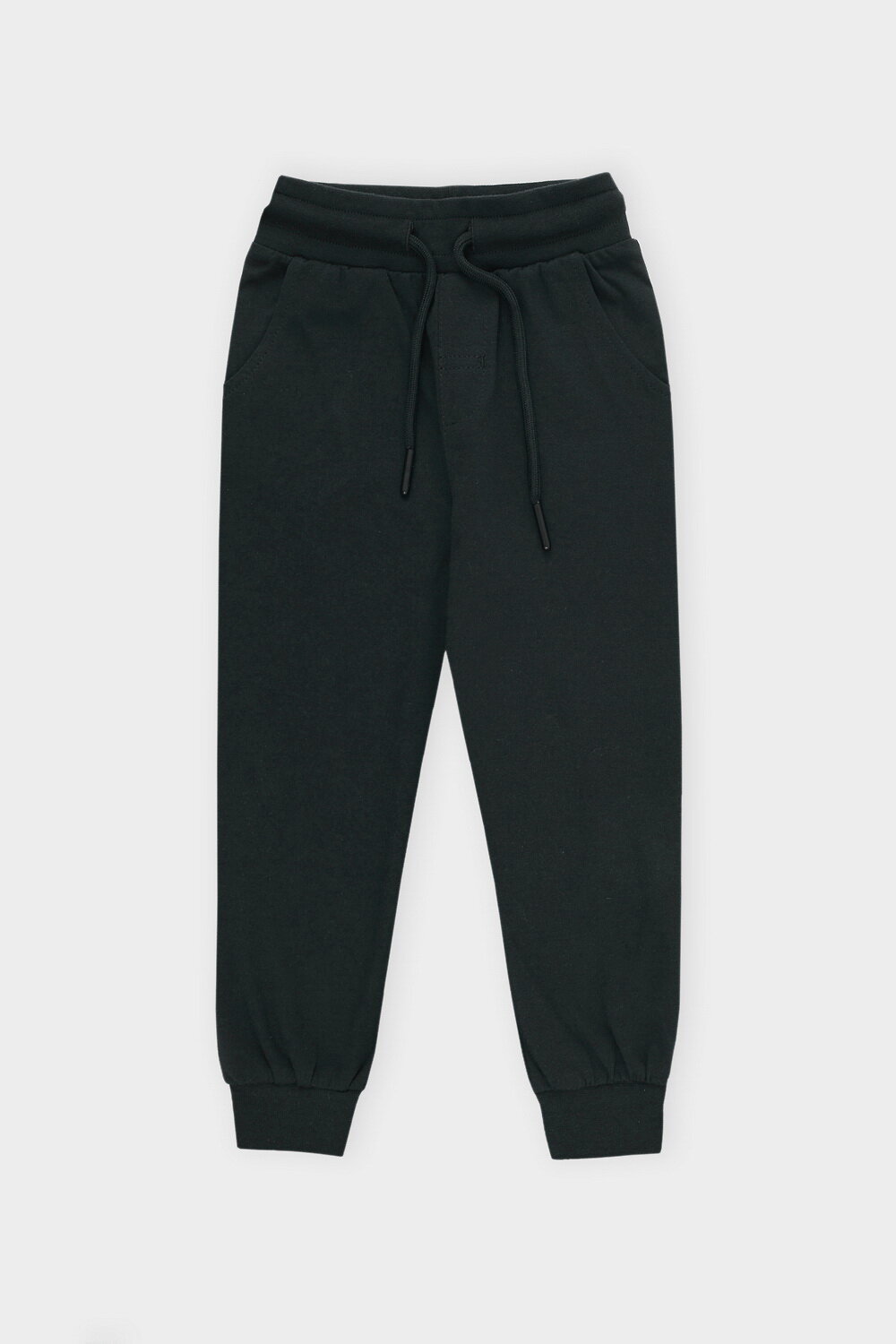 Трикотажные брюки для мальчика из высококачественного трикотажного полотна супрем. Эластичный пояс на резинке регулируется по ширине с помощью шнурка, по бокам два удобных кармана, внизу эластичные манжеты.