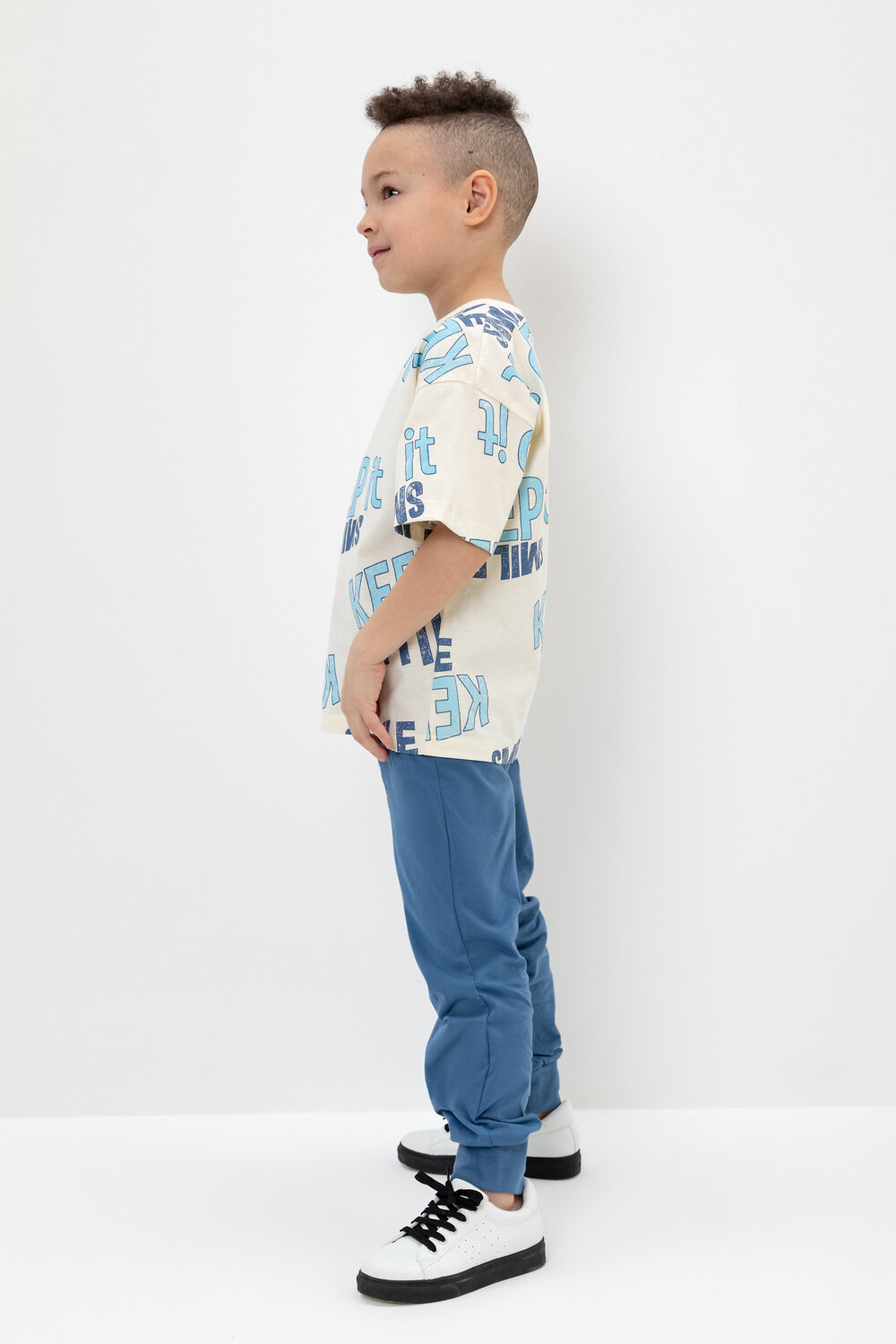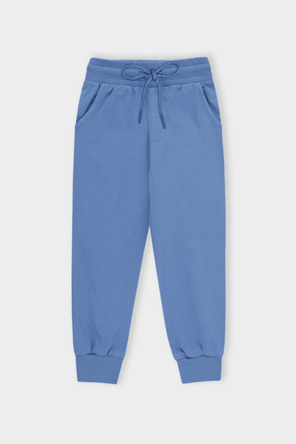 Трикотажные брюки для мальчика из высококачественного трикотажного полотна супрем. Эластичный пояс на резинке регулируется по ширине с помощью шнурка, по бокам два удобных кармана, внизу эластичные манжеты.