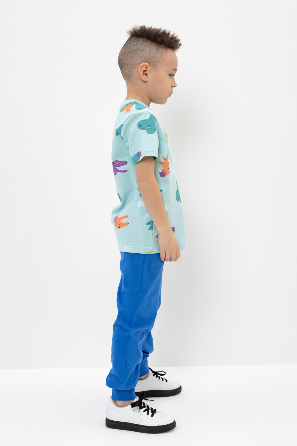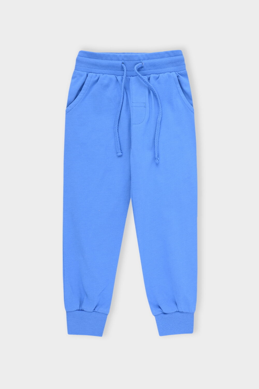 Трикотажные брюки для мальчика из высококачественного трикотажного полотна супрем. Эластичный пояс на резинке регулируется по ширине с помощью шнурка, по бокам два удобных кармана, внизу эластичные манжеты.