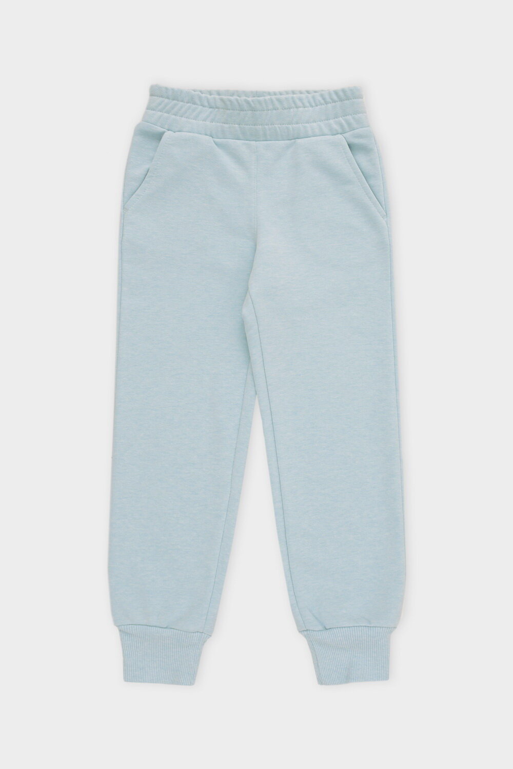 Трикотажные брюки для девочки из петельчатого футера. В составе 70% натурального хлопка и 30% полиэстера, при этом полиэстер ввязан внутрь по особой технологии и не соприкасается с кожей. Эластичный пояс на резинке, по бокам два удобных кармана, внизу эластичные манжеты.