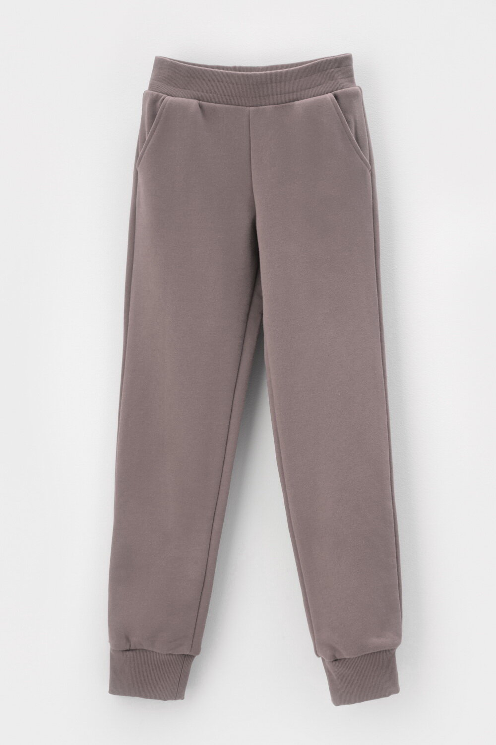 Трикотажные брюки для девочки из петельчатого футера. В составе 80% натурального хлопка и 20% полиэстера, при этом полиэстер ввязан внутрь по особой технологии и не соприкасается с кожей. Эластичный пояс на резинке, по бокам два удобных кармана, внизу эластичные манжеты.