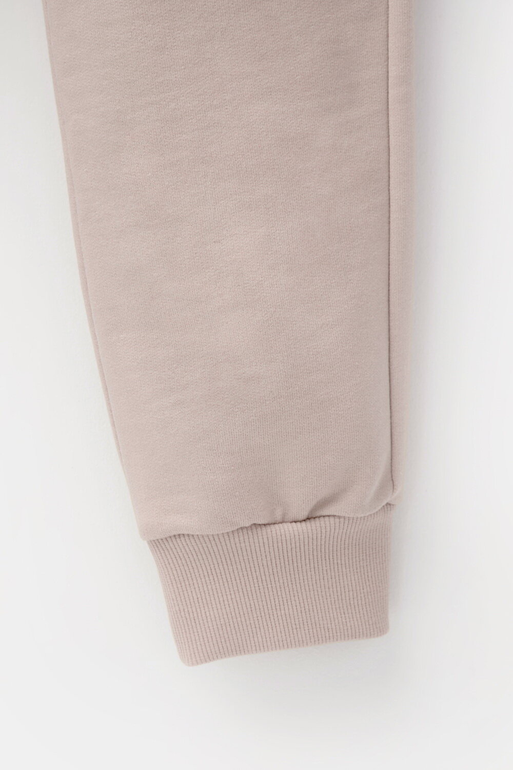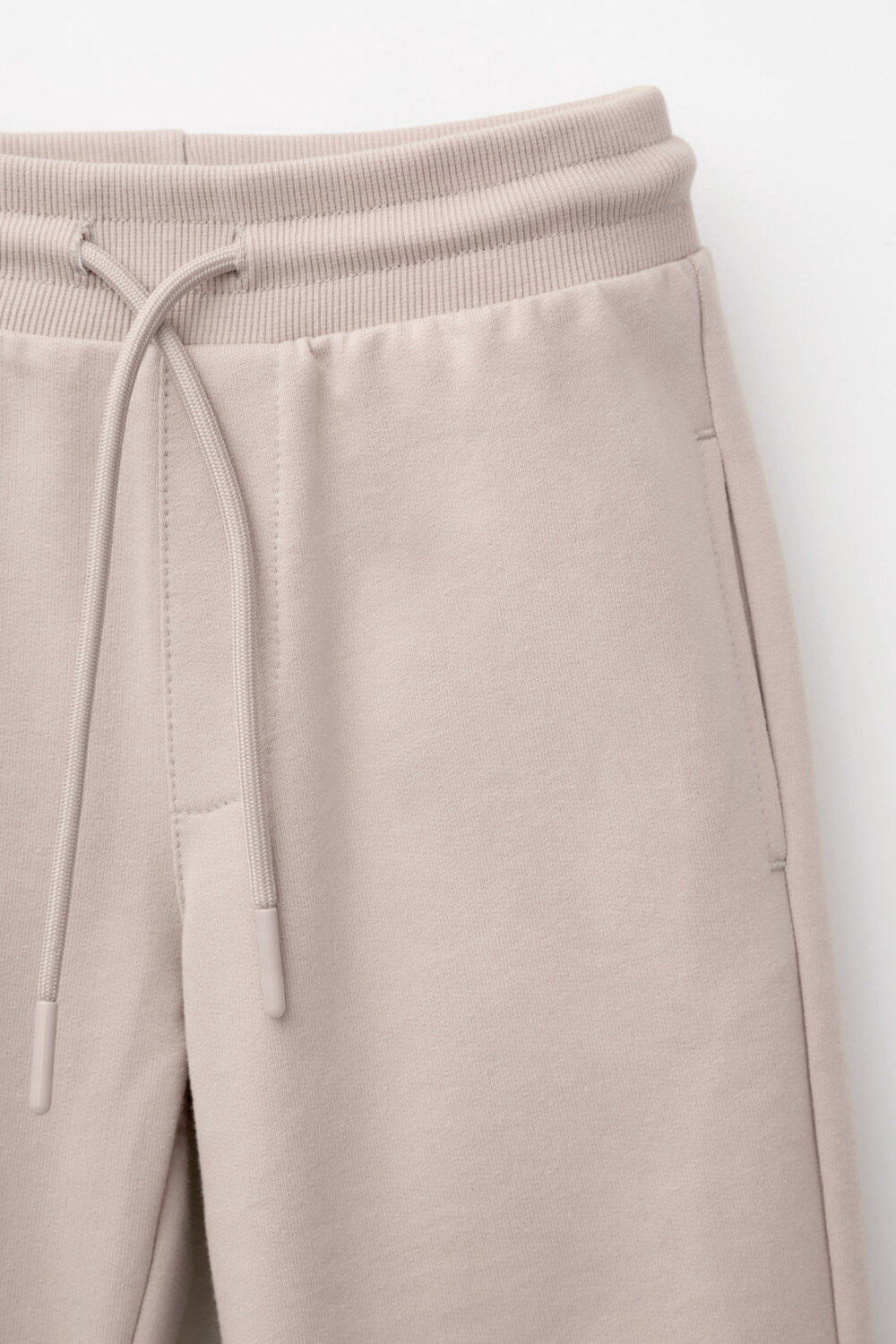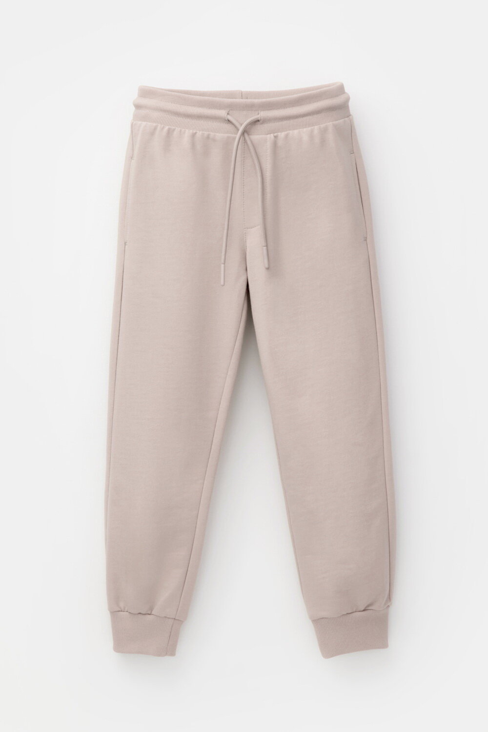 Трикотажные брюки для мальчика из петельчатого футера. Эластичный пояс на резинке регулируется по ширине с помощью шнурка, по бокам два удобных кармана, внизу эластичные манжеты.