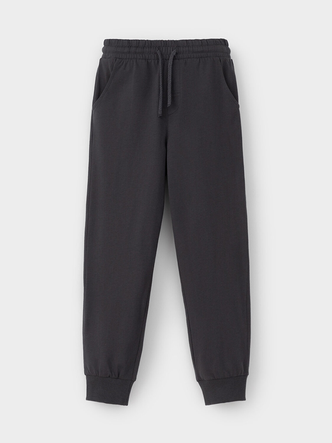 Брюки для мальчика из высококачественного трикотажного полотна. Пояс на резинке регулируется по ширине с помощью шнурка. По бокам два удобных кармана. Внизу эластичные манжеты.