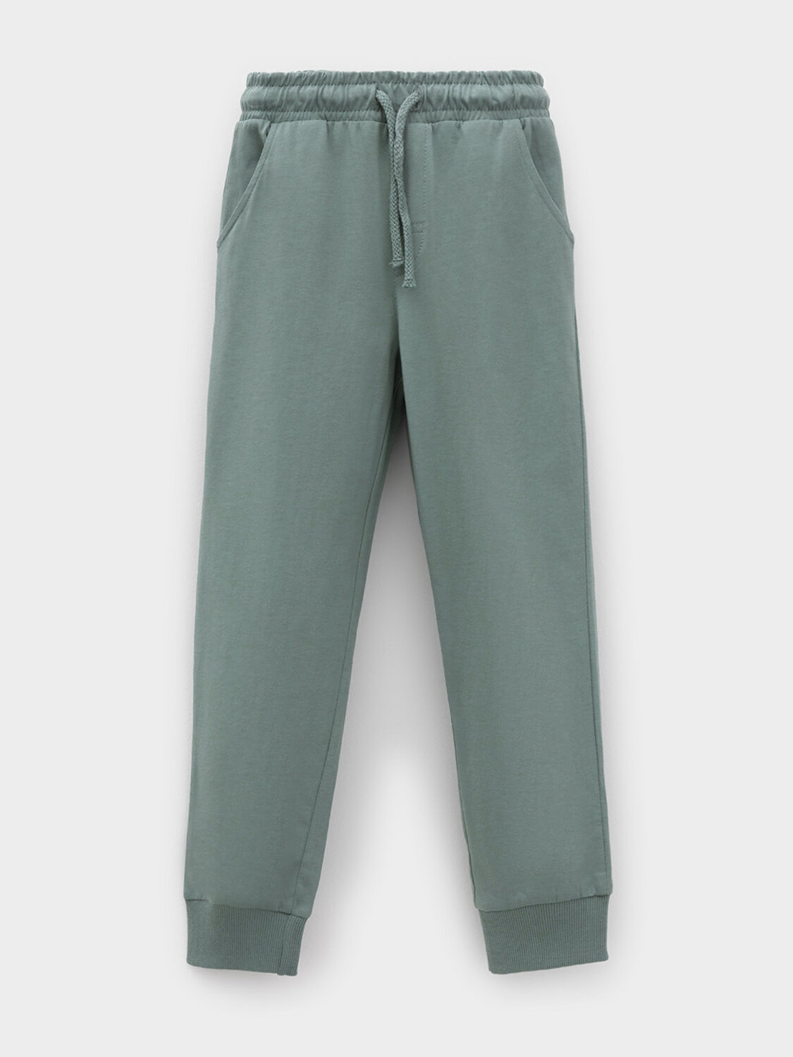 Брюки для мальчика из высококачественного трикотажного полотна. Пояс на резинке регулируется по ширине с помощью шнурка. По бокам два удобных кармана. Внизу эластичные манжеты.