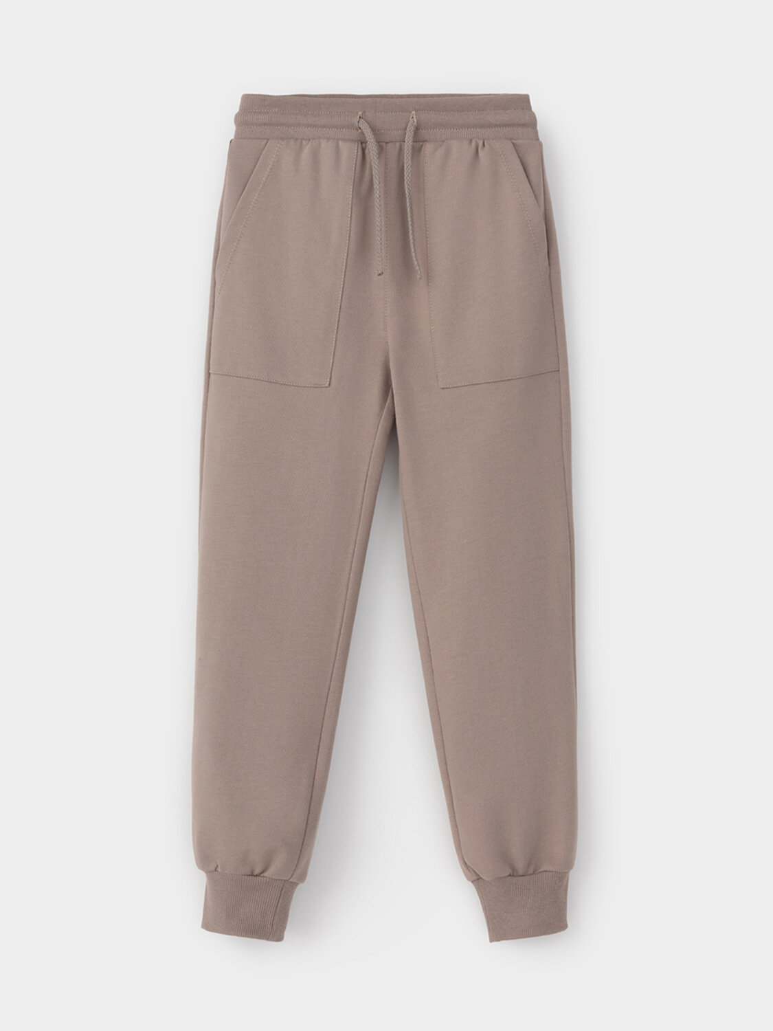 Брюки для мальчика из мягкого петельчатого трикотажа. Эластичный пояс на резинке регулируется по ширине с помощью шнурка. По бокам два удобных накладных кармана. Внизу эластичные манжеты.