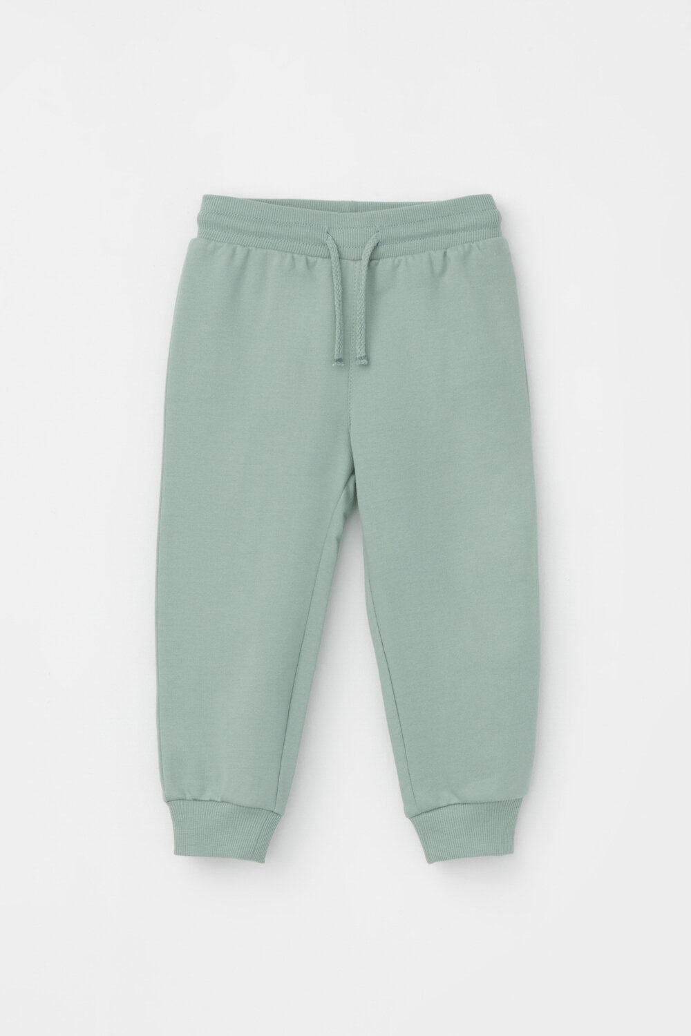 Трикотажные брюки для мальчика из петельчатого футера. Эластичный пояс на резинке регулируется по ширине с помощью шнурка, внизу эластичные манжеты.