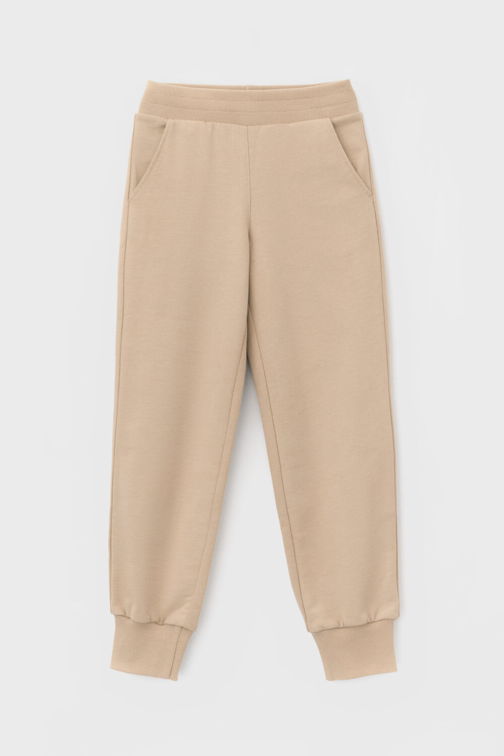 Трикотажные брюки для девочки из петельчатого футера. Эластичный пояс на резинке, по бокам два удобных кармана, внизу эластичные манжеты.