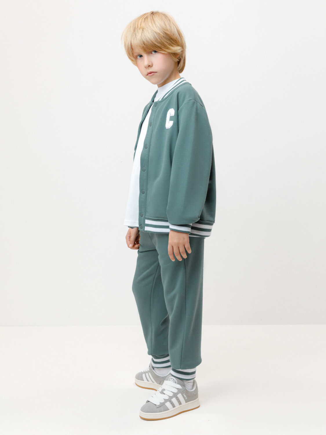 Объёмные брюки для мальчика из мягкого петельчатого трикотажа. В составе 80% натурального хлопка и 20% полиэстера, при этом полиэстер ввязан внутрь по особой технологии и не соприкасается с кожей. Эластичный пояс на резинке регулируется по ширине с помощью шнурка, по бокам два удобных кармана, внизу эластичные манжеты.